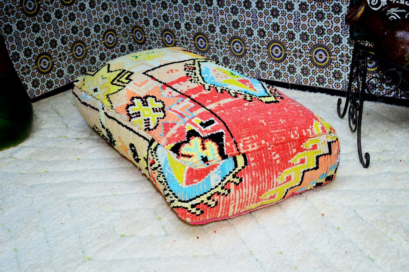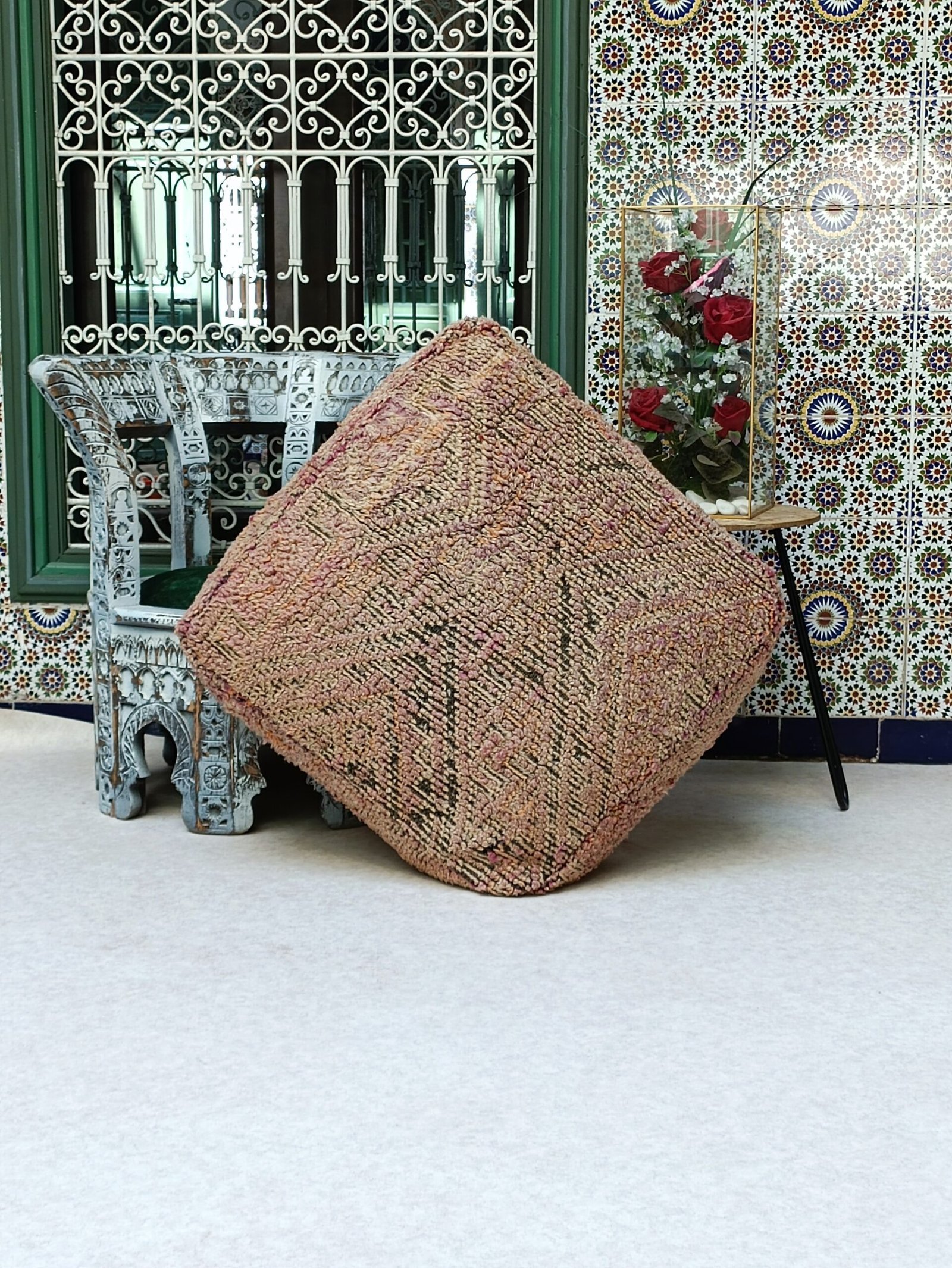 Kilim Moroccan Pouf, vintage Moroccan ottoman Square Pouf, Yoga meditation poufs