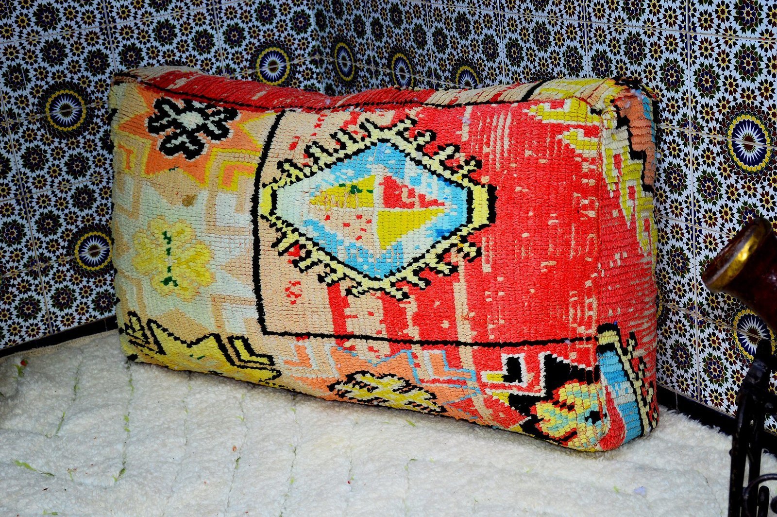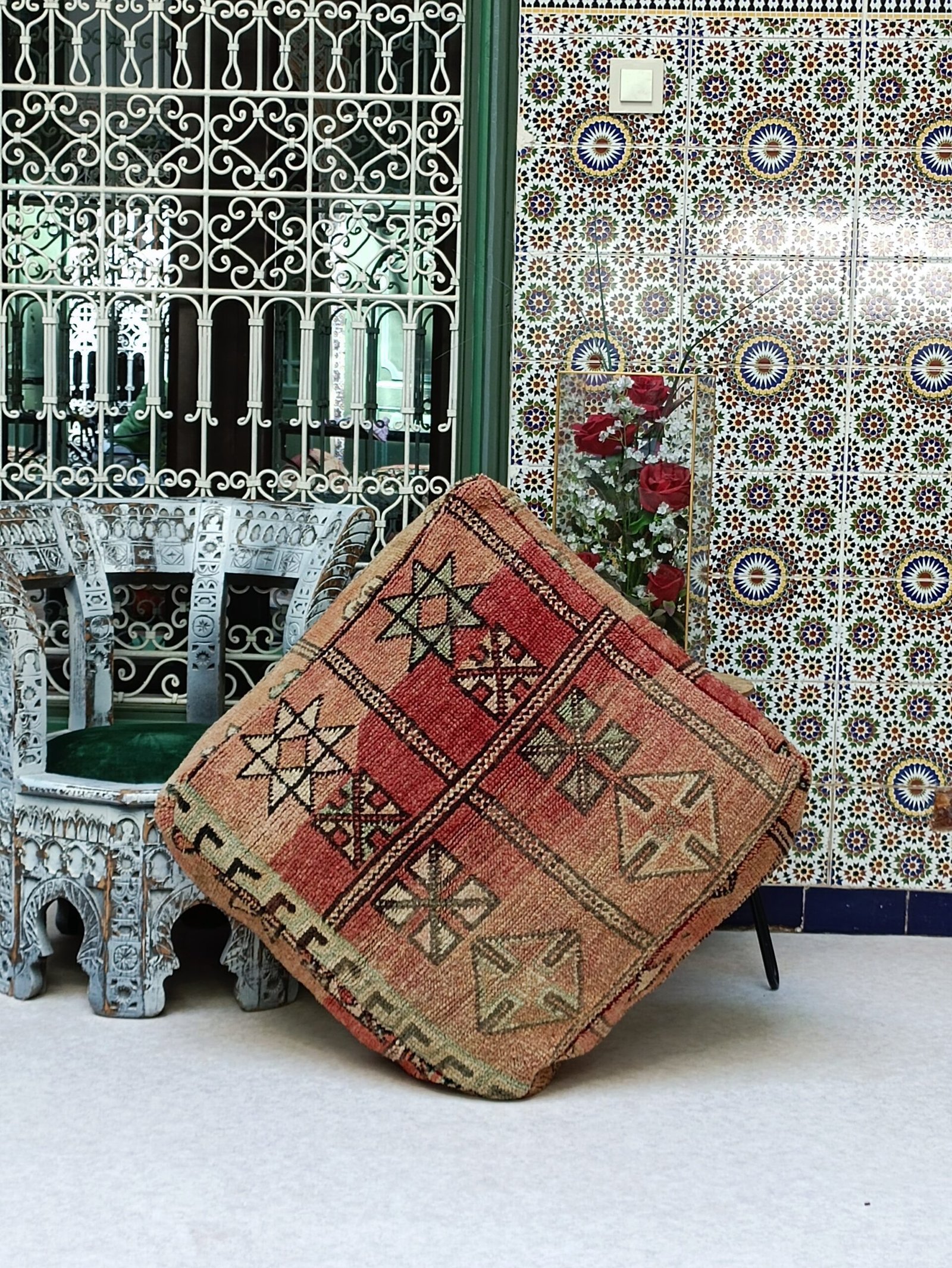 Handmade Moroccan Kilim Pouffe,Big Size, 100% Wool, Vintage Style, footrest pillow