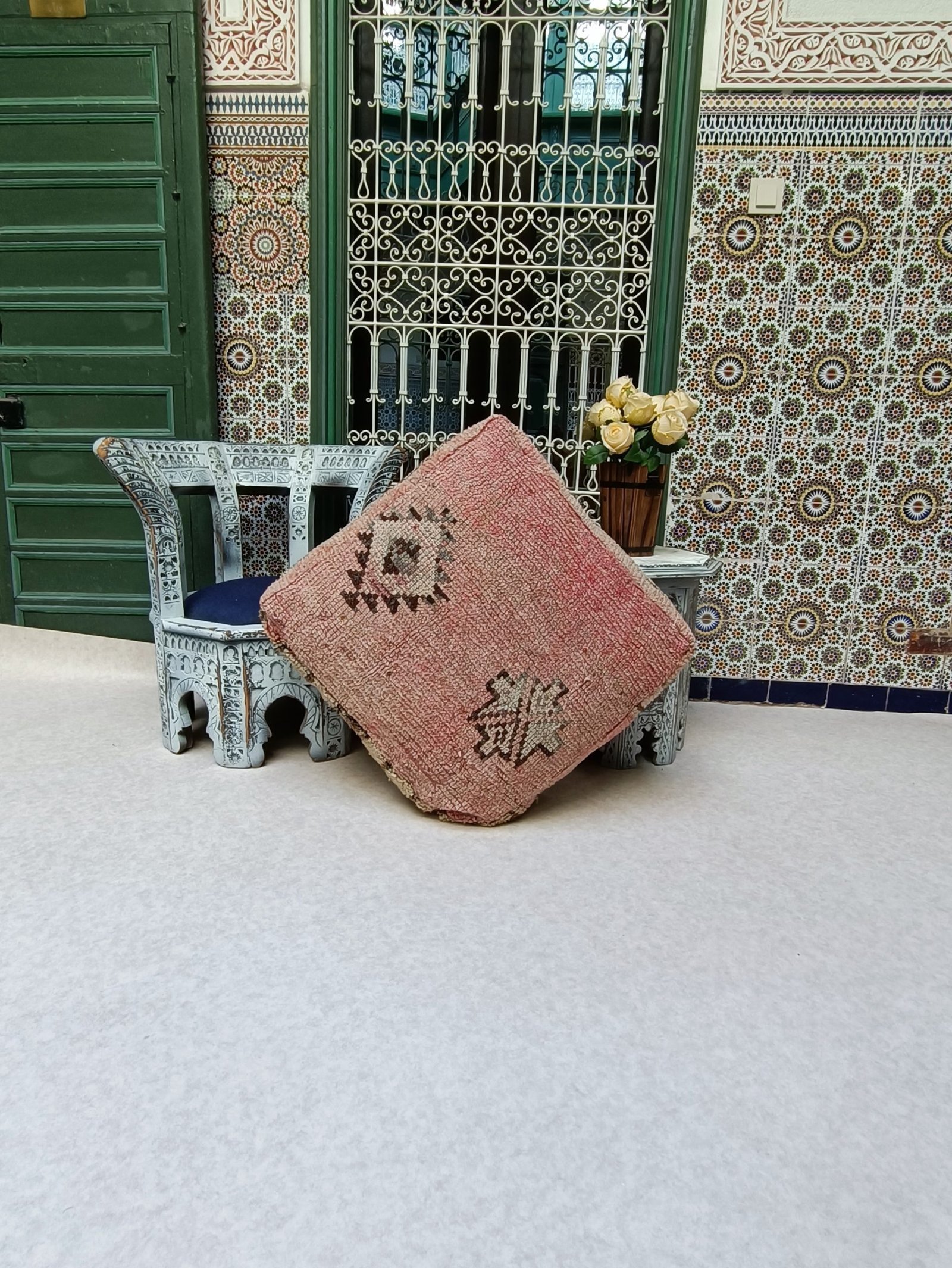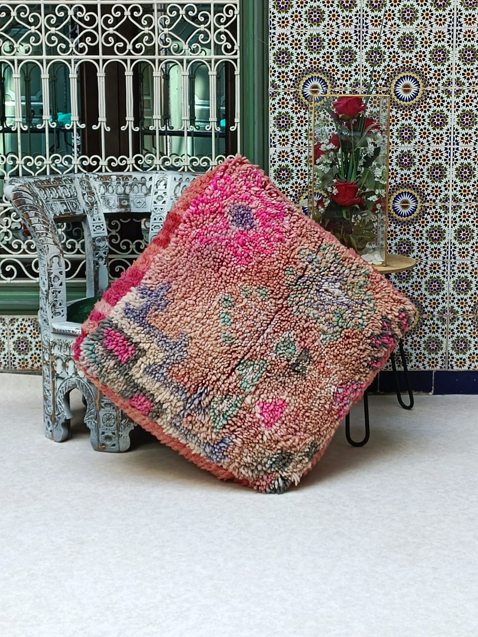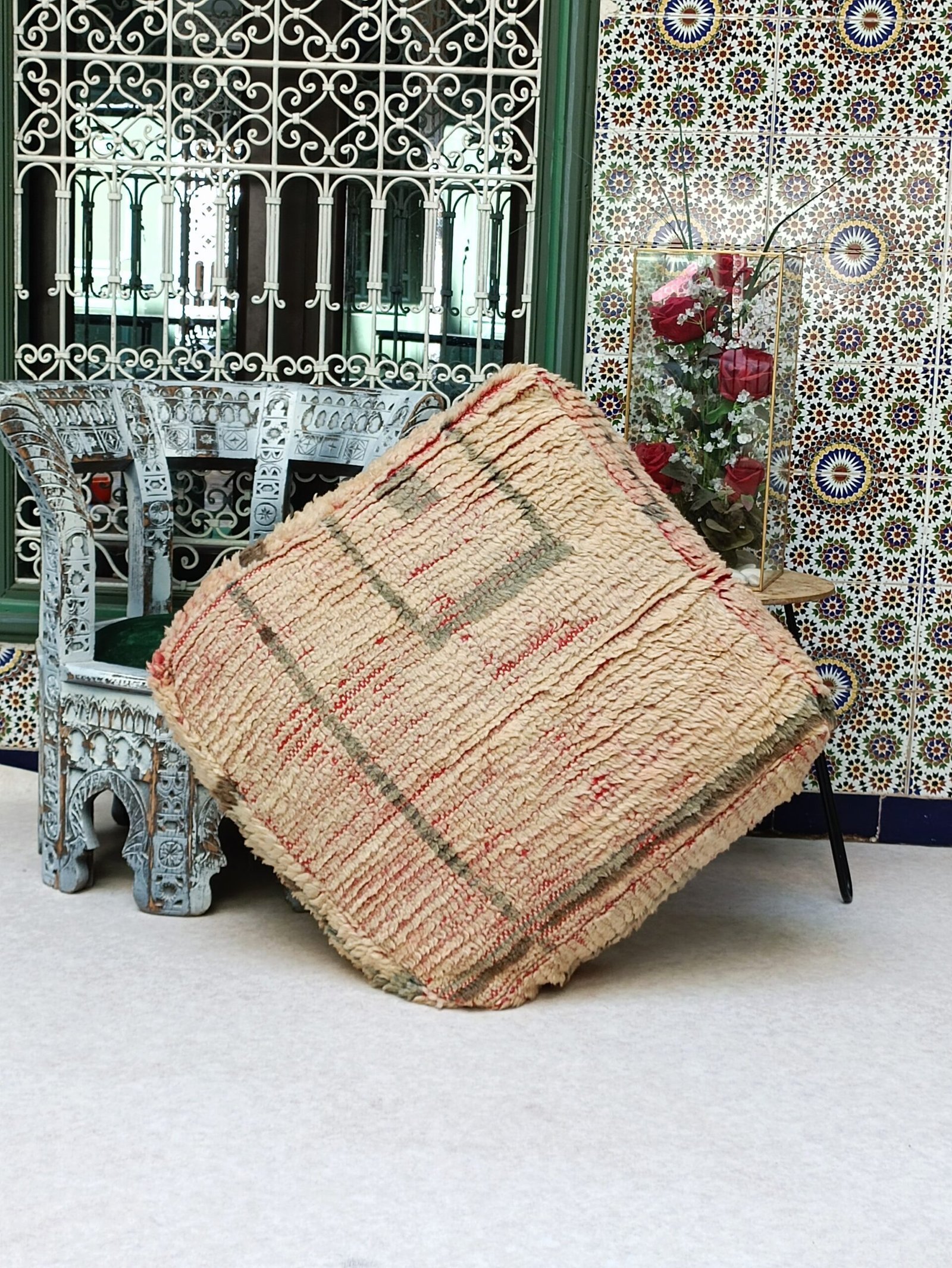 Vintage Boujaad Floor Cushion – Moroccan Pouf 60x60x20cm