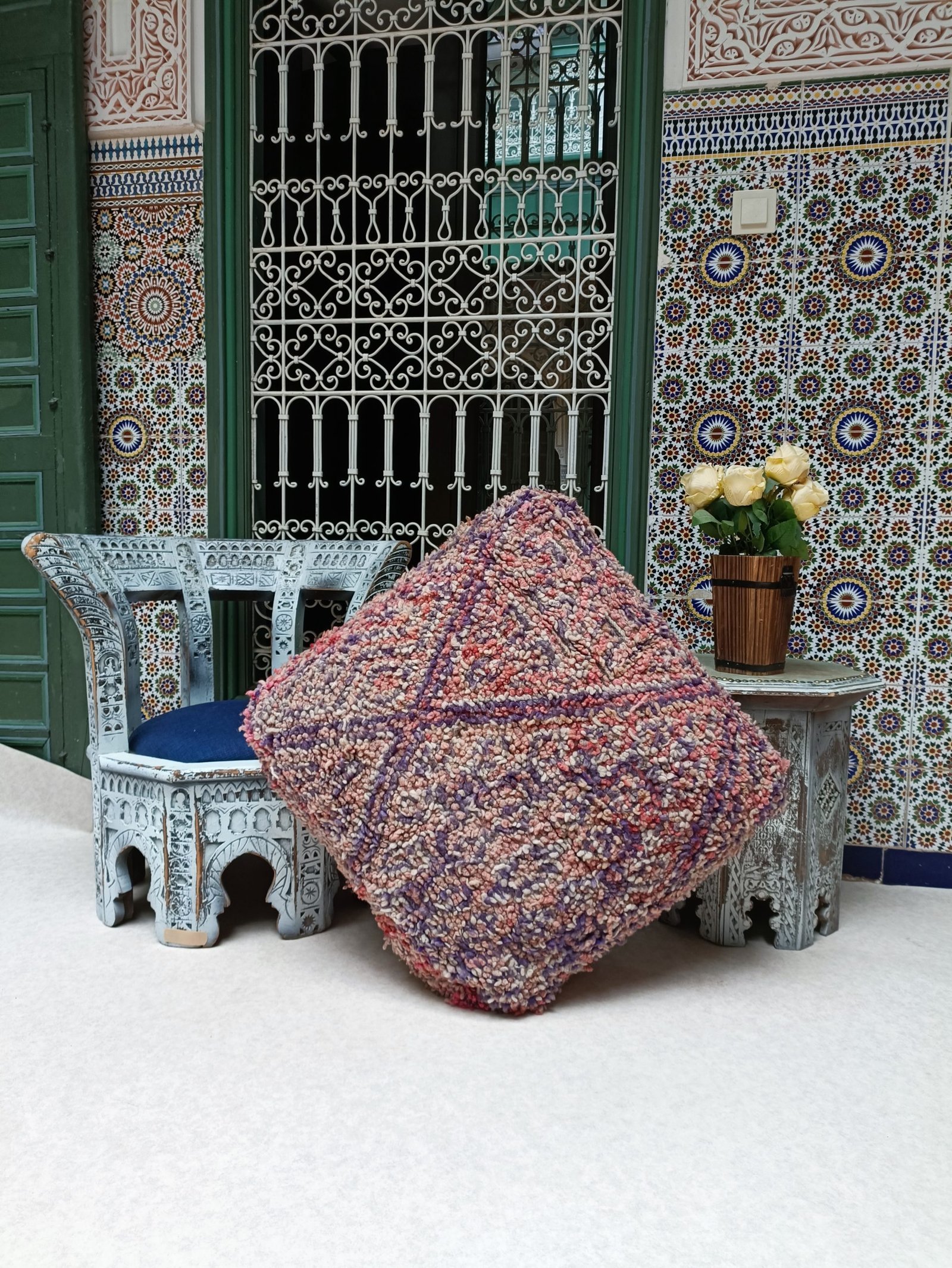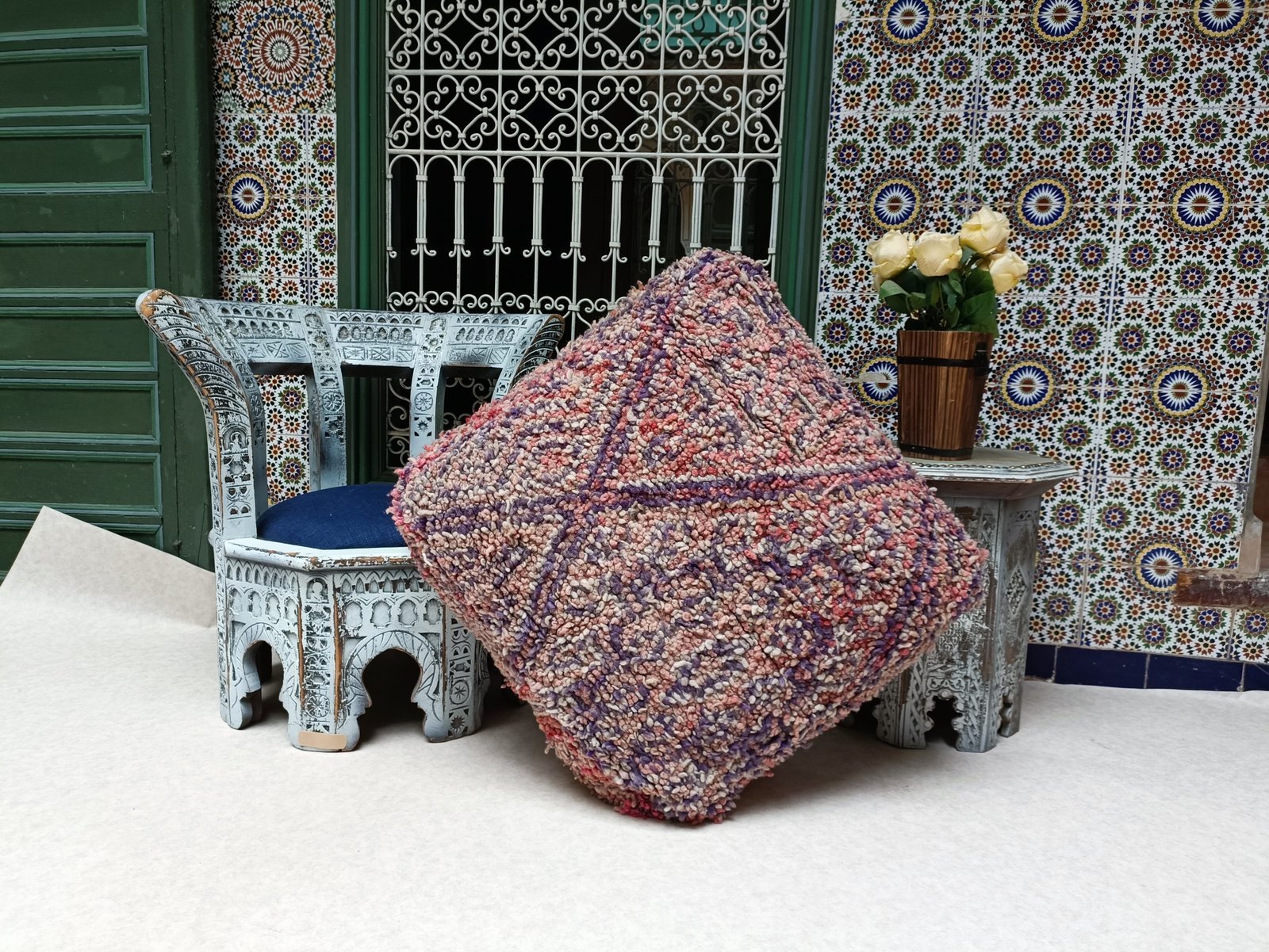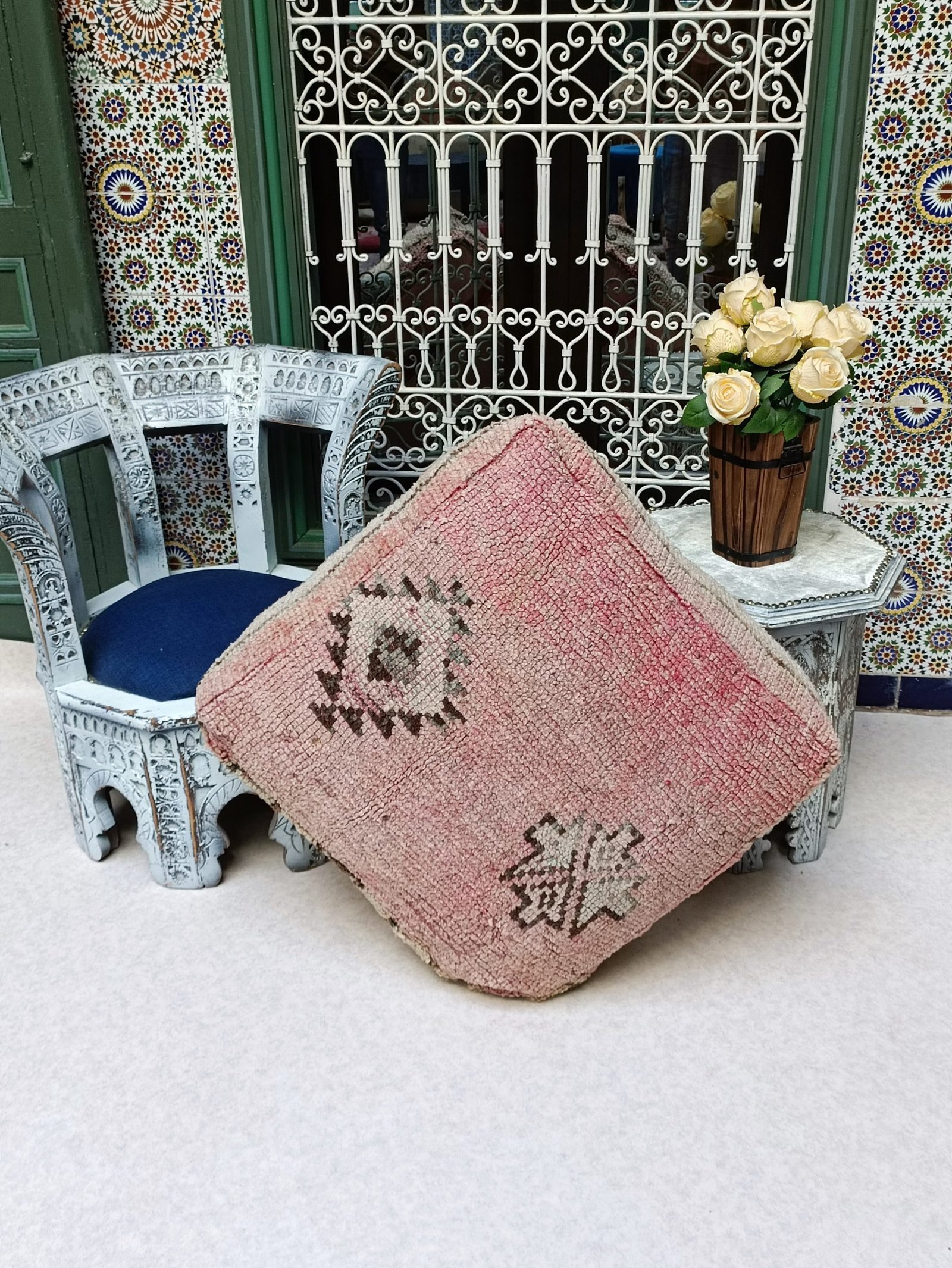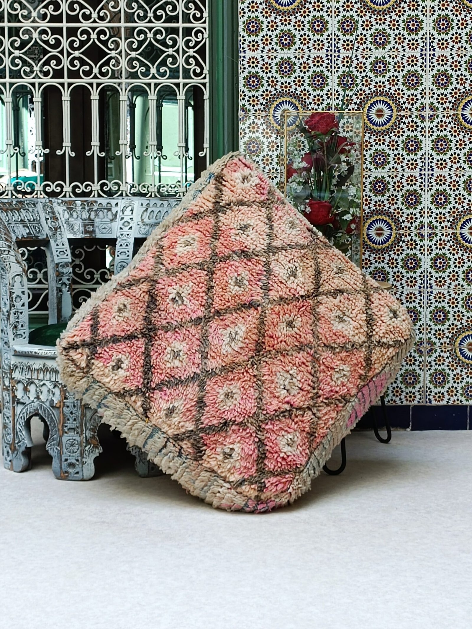 Vintage Boujaad Floor Cushion – Moroccan Pouf 60x60x20cm