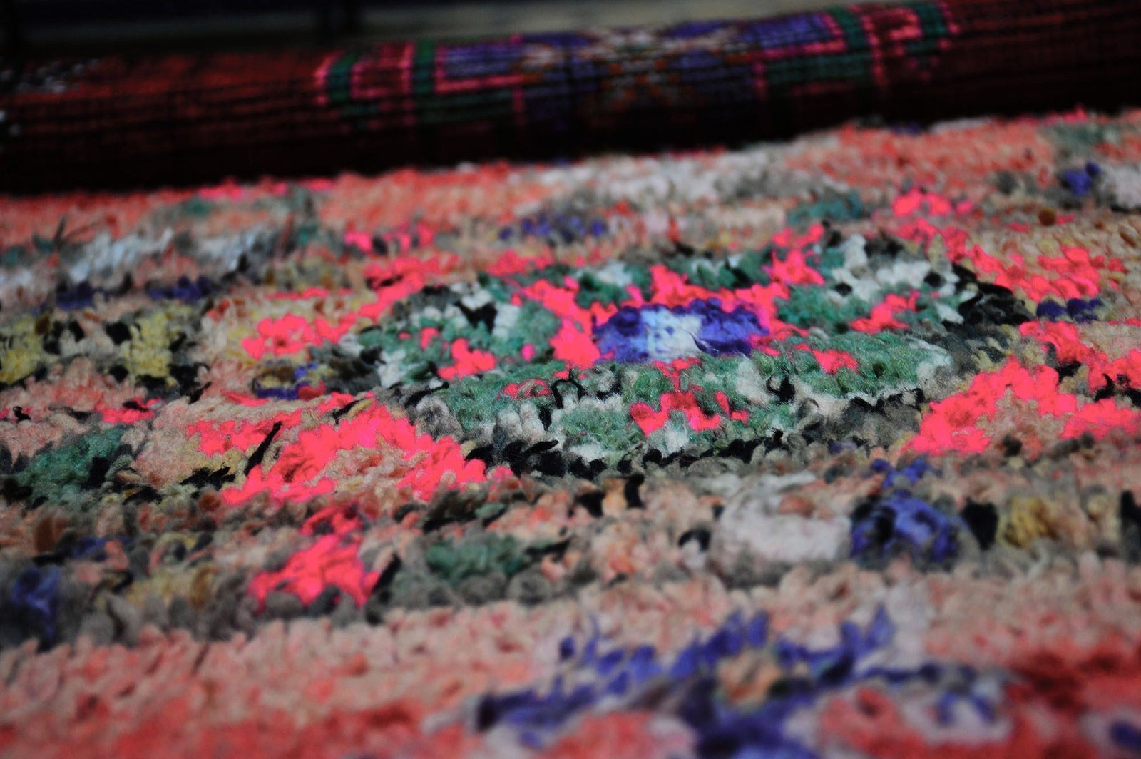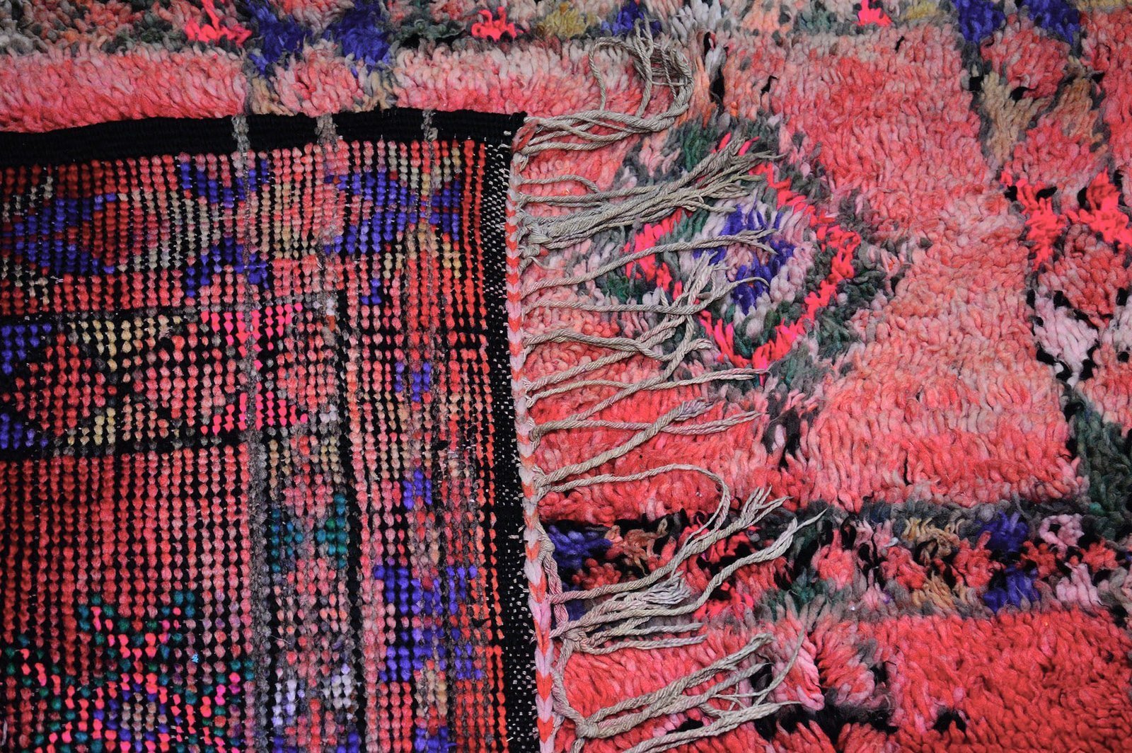This incredible 1970s Moroccan traditional Berber vintage carpet is 100% handmade by the Atlas mountains artist Berber women, along with this amazing colorful vintage look design that is wonderful. Bold geometric prints and Berber symbols will bring serenity and character to your interiors.