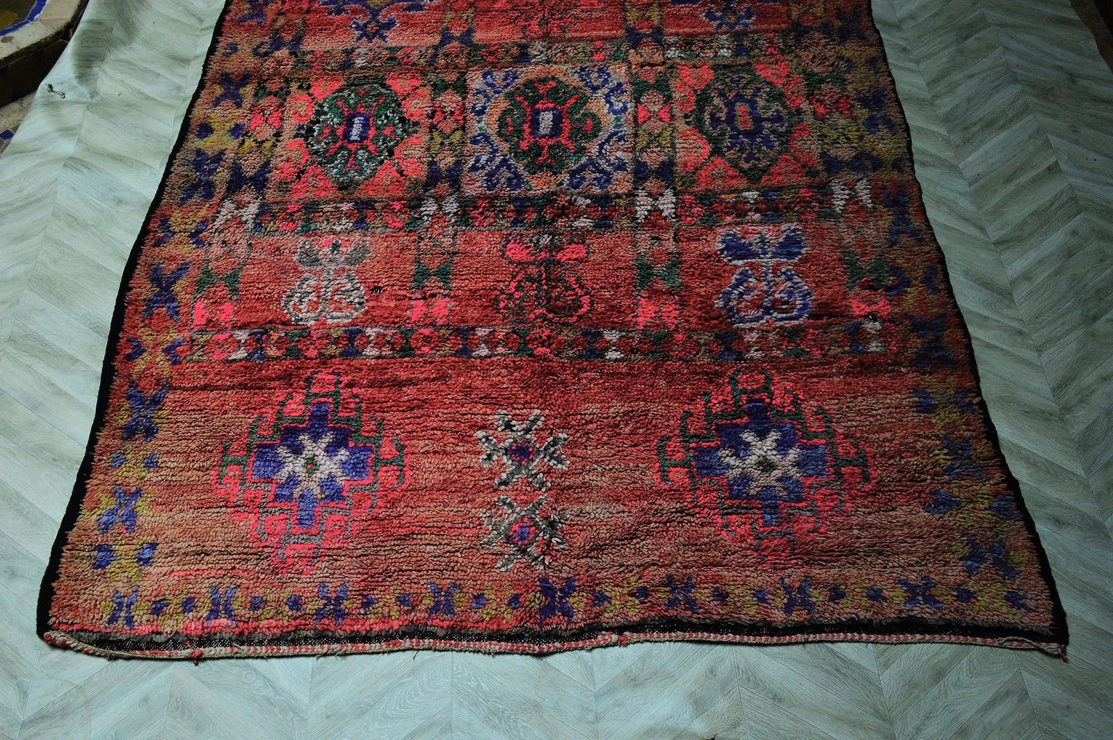 This carpet article is vintage meaning that there will be signs of wear and tear of use and is common due to age. Please zoom in on these photos to make sure that you agree with the imperfections that define the character. If you need more photos or have any questions please feel free to contact us.