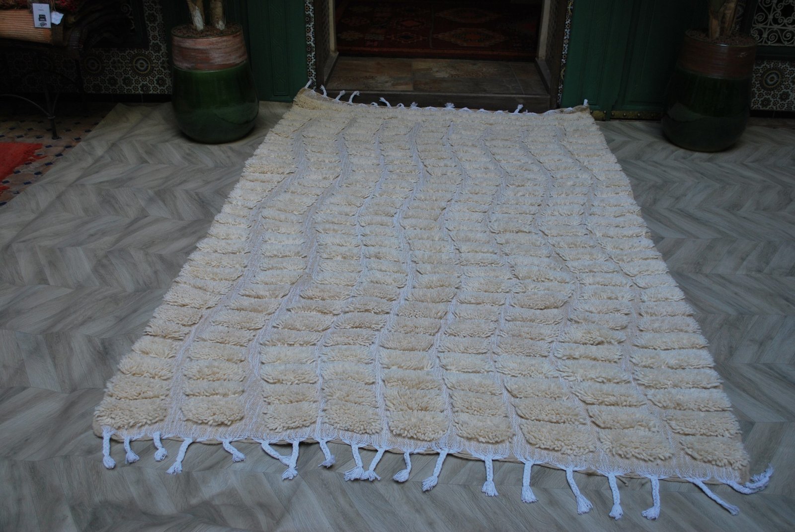Beni Ourain Wool Rug – Light Green Berber (245x167cm)