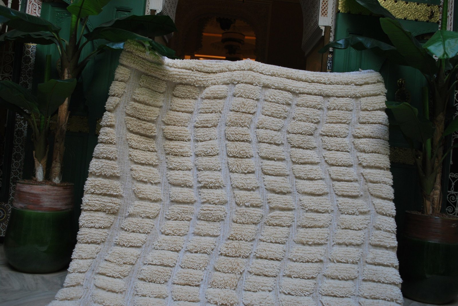 We believe that true beauty lies in tradition. That’s why we work exclusively with local craftspeople who use ancestral techniques, natural materials, and sustainable practices to bring timeless designs to life. Our offerings include handwoven Berber rugs, cactus silk pillows, Beni Ourain poufs, hand-carved wooden decor, brass lighting art, and more — each piece telling a story of culture, craftsmanship, and care.