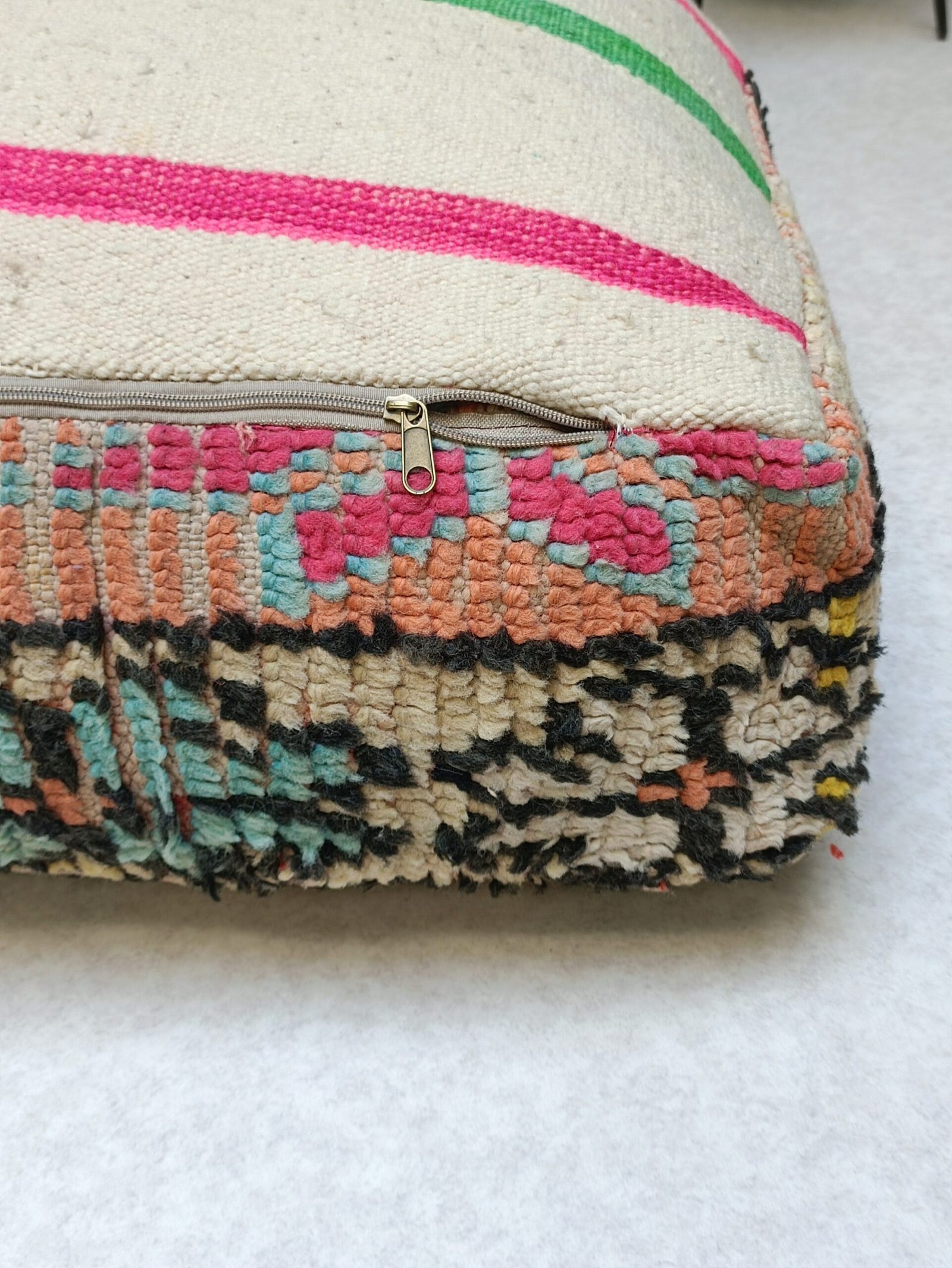 Berber Floor Cushion, Moroccan Pouf, Handmade Poufs, Vintage Moroccan pouf 1.96 x 1.96 x 0.65 FT / 60 x 60 x 20 cm