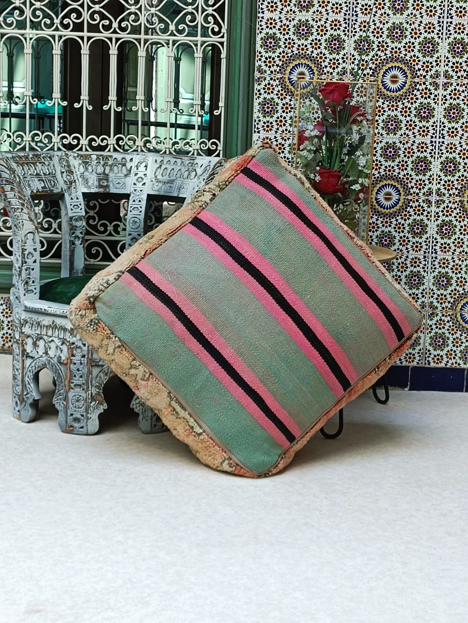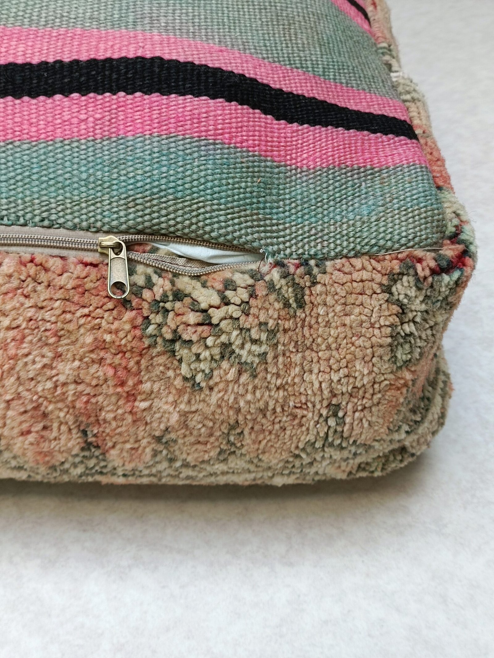 Fabulous Floor cushion, Handmade from Boujad rug – Berber Moroccan Floor cushion, Seat cushion 1.96 x 1.96 x 0.65 FT / 60 x 60 x 20 cm