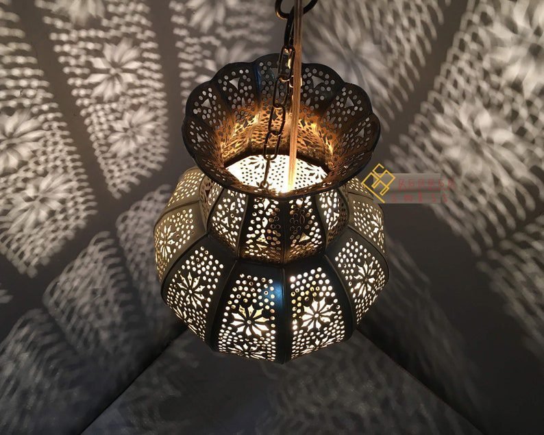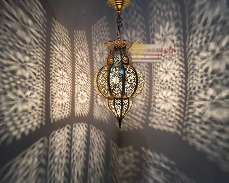 Moroccan Handmade Engraved Brass Children’s Father Ceiling Lamp, Moroccan Decor Lighting Pendant Light Brass Islamic Handmade Lantern, which will add a touch of craftsmanship to your interior by diffusing a reflection on the ceiling as well as the walls and to illuminate the room.