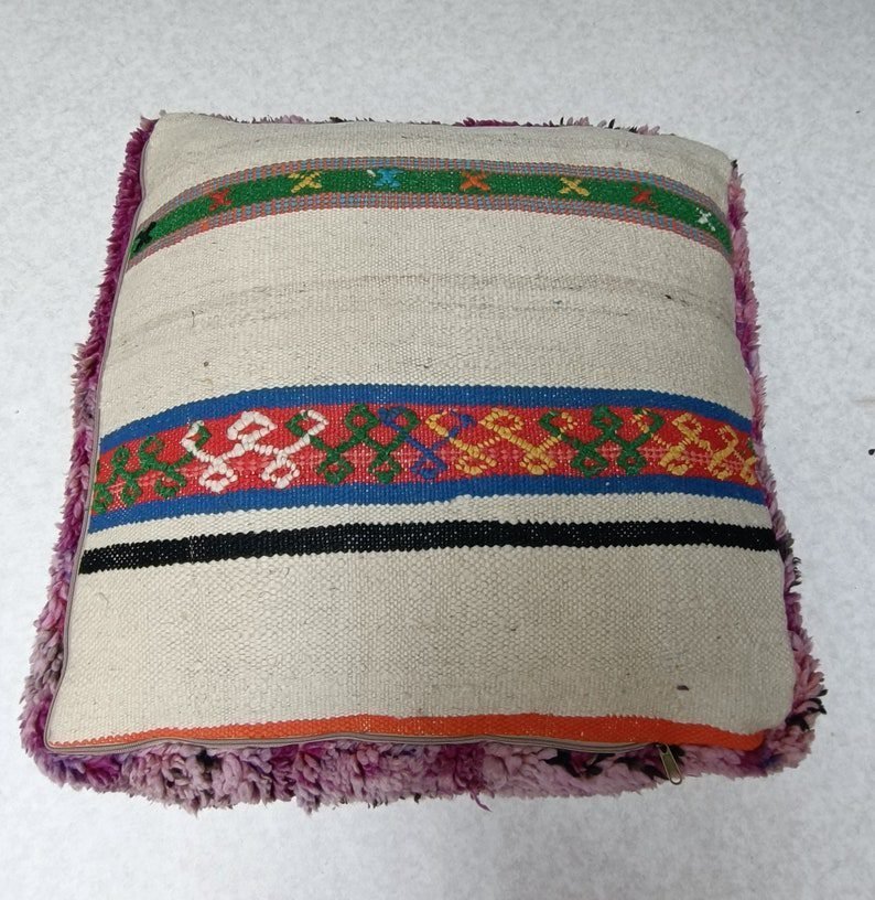 Moroccan Kilim Floor Cushion is multiple function, it can be used as an ottoman, footrest, yoga meditation cushion, or just a coffee table.