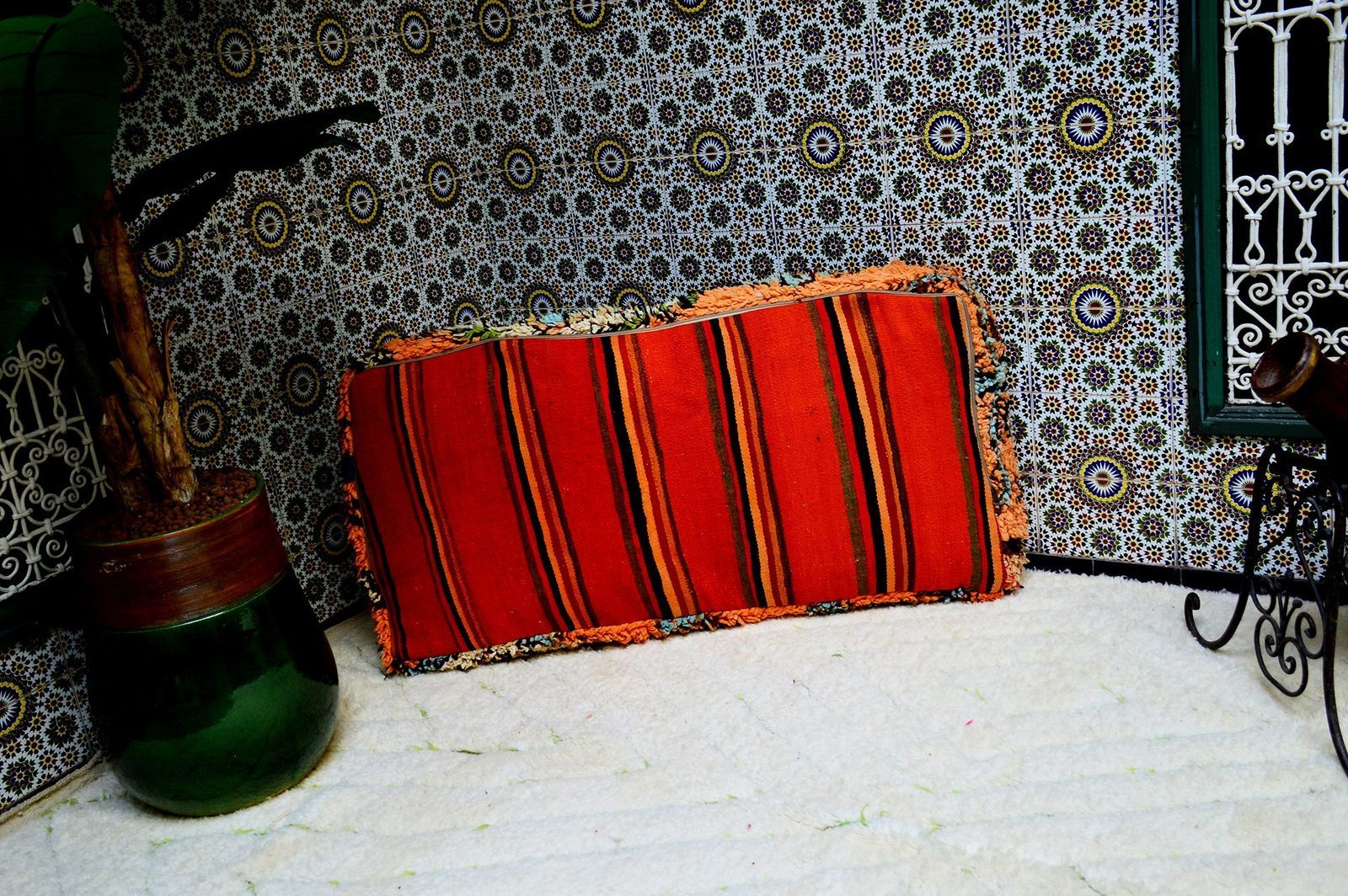 Handmade Moroccan Kilim Pouffe,Big Size, 100% Wool, Vintage Style, footrest pillow