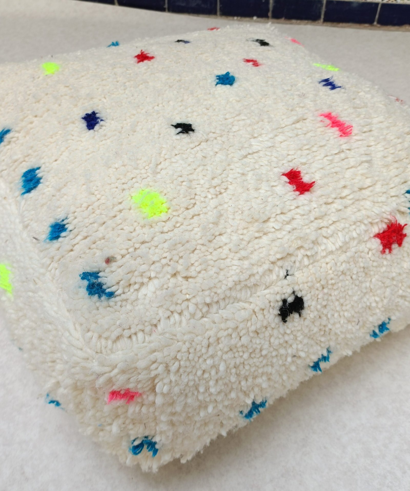 This one-of-a-kind Moroccan Pouf is handcrafted by Berber women using vintage kilim / Beni ourain / Beni mellal rugs from Morocco. Each Moroccan Pouf kilim is distinct and unique and with a Berber symbol, each symbol has a meaning that tells stories