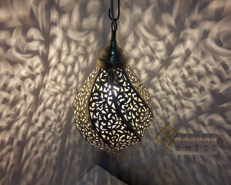 Elegant And Refined, This Moroccan Ceiling Lamp Casts Beautiful Shadows Through The Intricate Openings. Truly Some Of The Best Lamp Craftsmanship In Morocco.