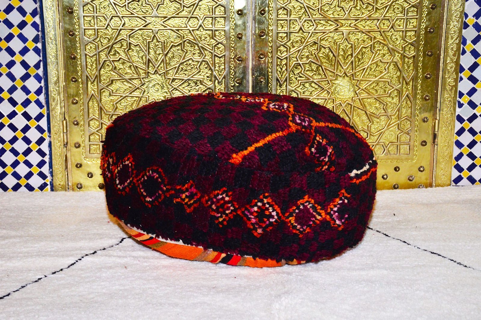 Moroccan Kilim Floor Cushion is multiple function, it can be used as an ottoman, footrest, yoga meditation cushion, or just a coffee table.