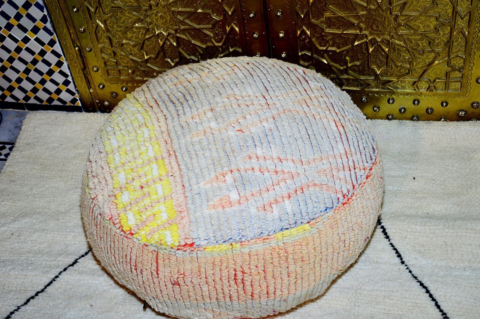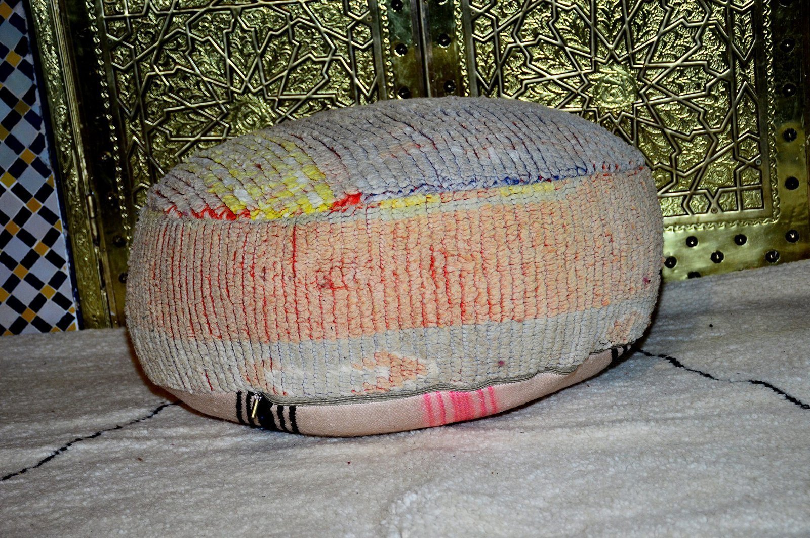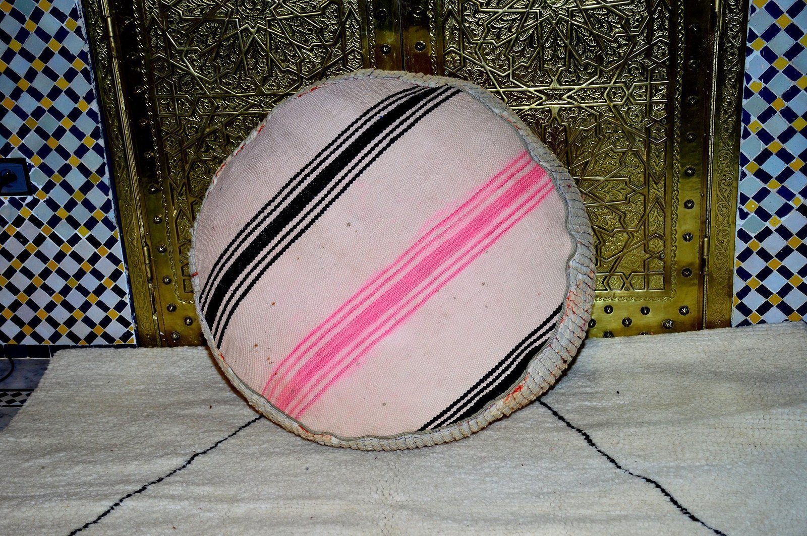 Moroccan kilim boujaad pouf, Large floor,Cercle pouf, Handmade Moroccan poof 100% kilim wool 60 x 22 cm