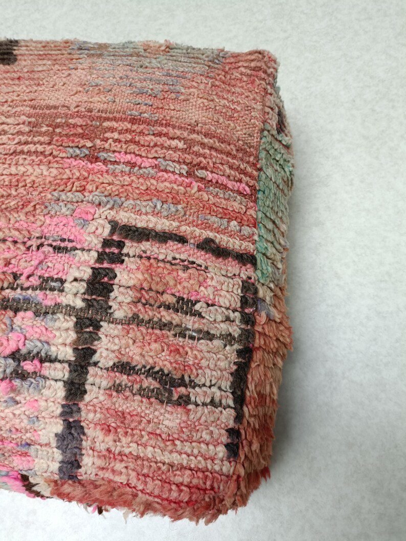 wool Pouf, handmade from old beni ouarain rug very resistant and very soft with a warm and elegant grain. All these features that make up wool make this pouf an exceptional interior and furnishing item.
