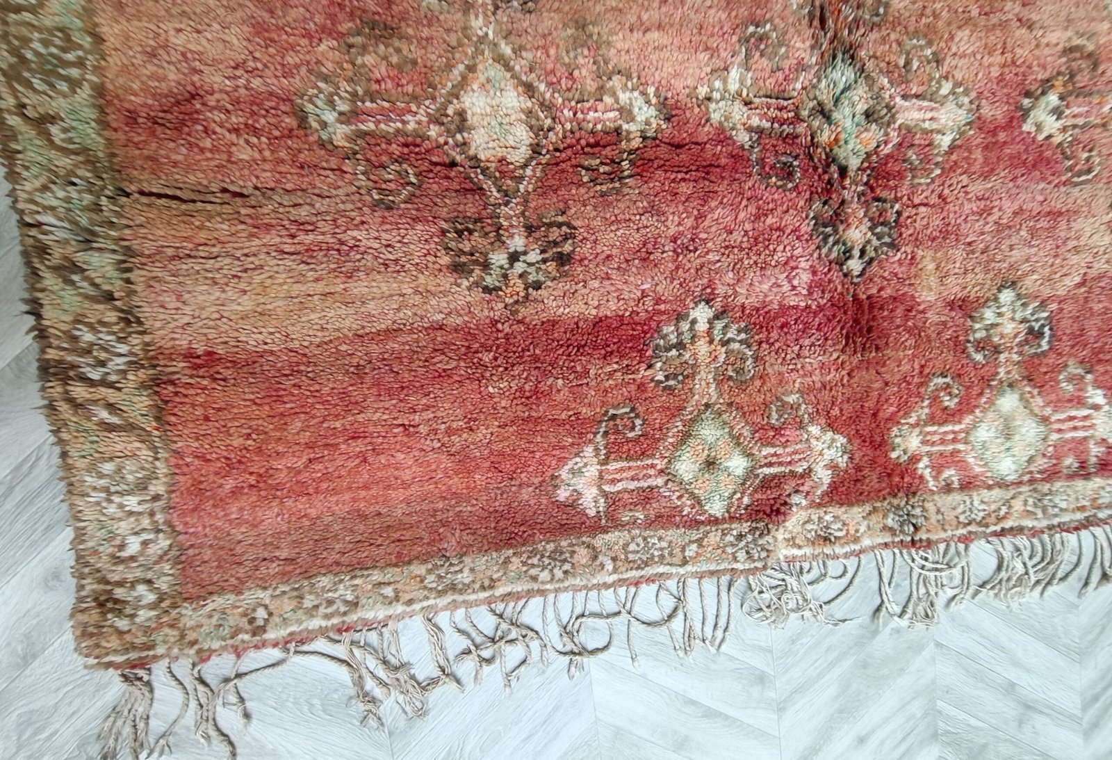 This Kilim rug was handmade by the Zanafi tribe situated in the foothills of the High Atlas Mountains of Morocco. It has been handwoven with wool; The wool comes from the villagers sheep who carefully select it for its quality.