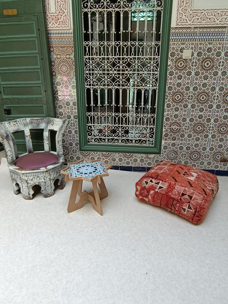 Moroccan Kilim Floor Cushion is multiple function, it can be used as an ottoman, footrest, yoga meditation cushion, or just a coffee table.