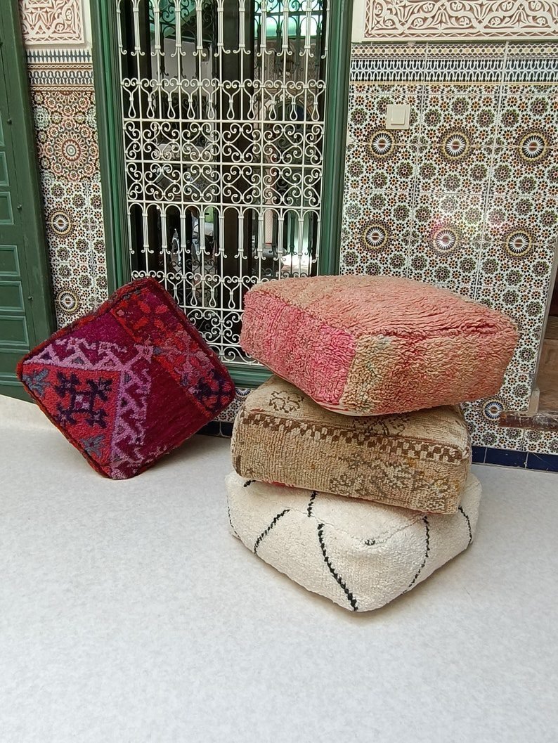 Moroccan pouf, floor cushion vintage Moroccan ottoman, square pouf, Berber floor cushion.