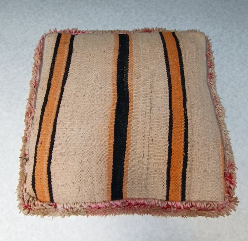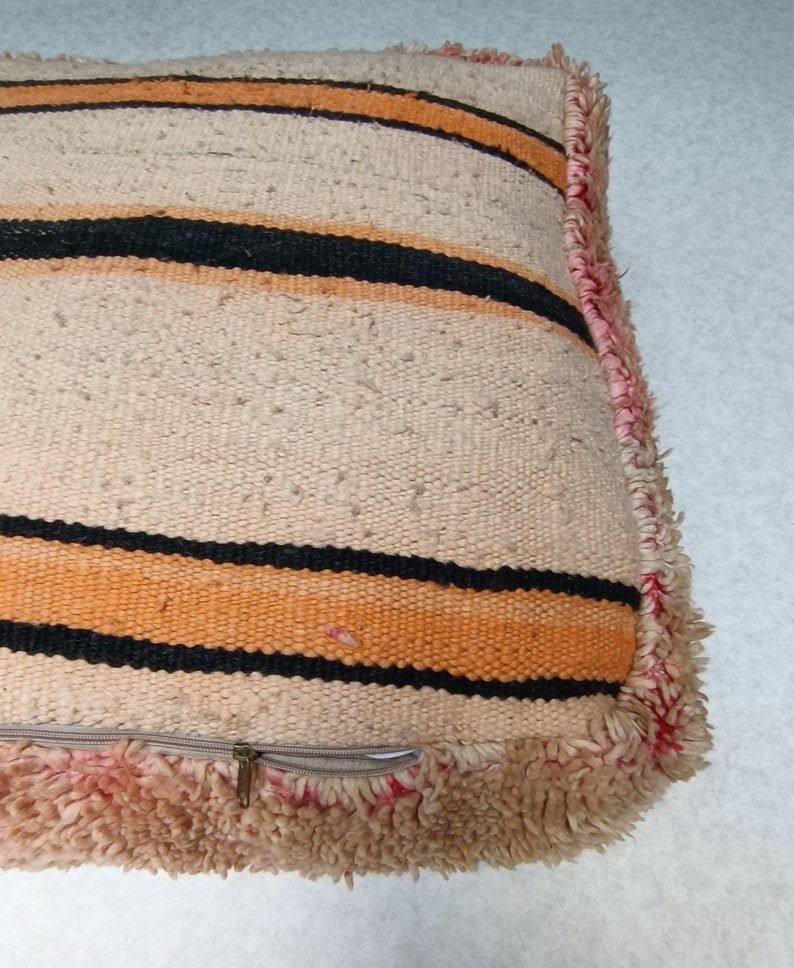 Moroccan vintage floor cushion, berber pouf, ottoman footrest, handmade floor pillow from vintage rug