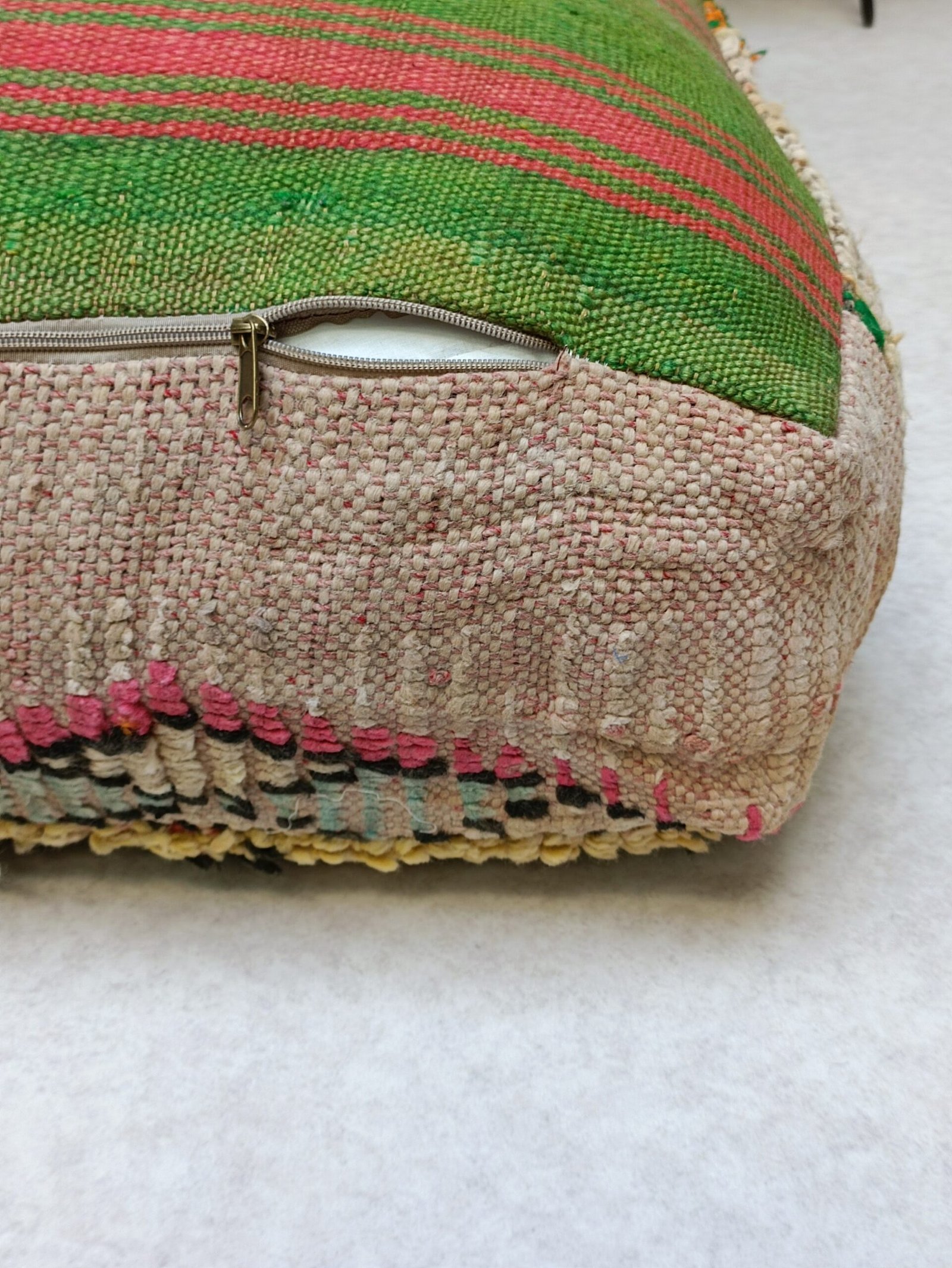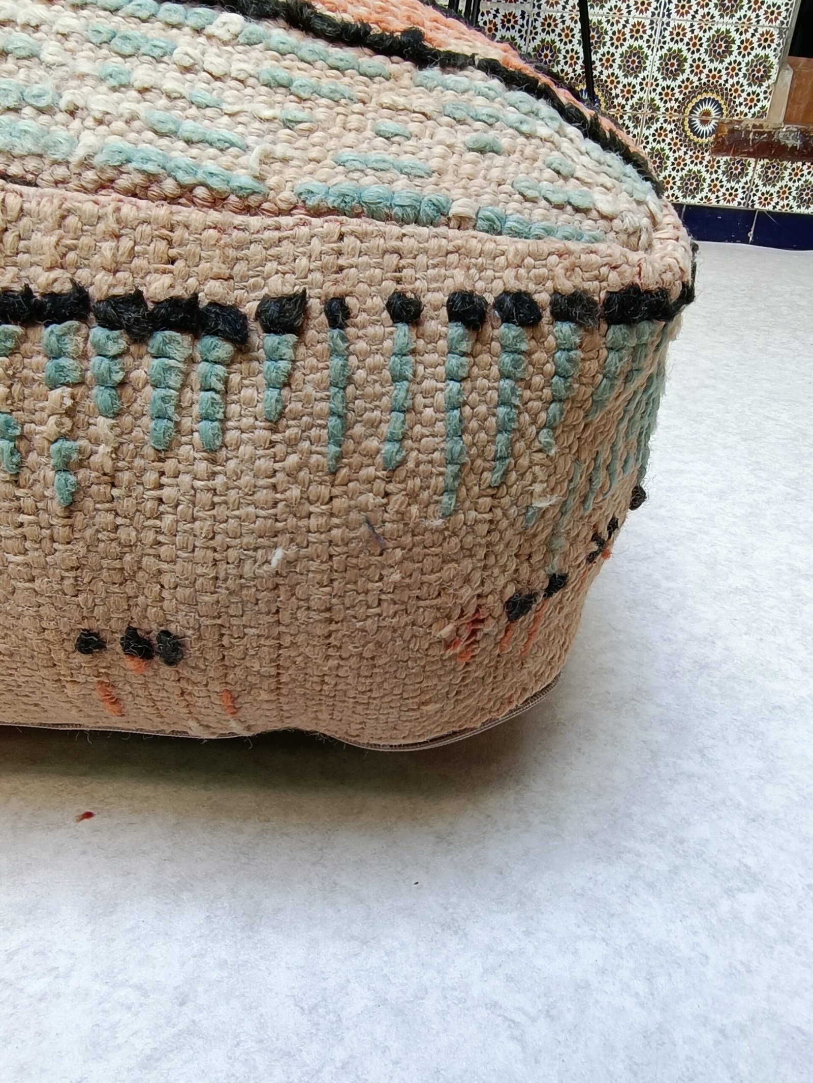 Moroccan vintage Floor Cushion, Moroccan Pouf, Unique vintage Floor Pillow 1.96 x 1.96 x 0.65 FT / 60 x 60 x 20 cm