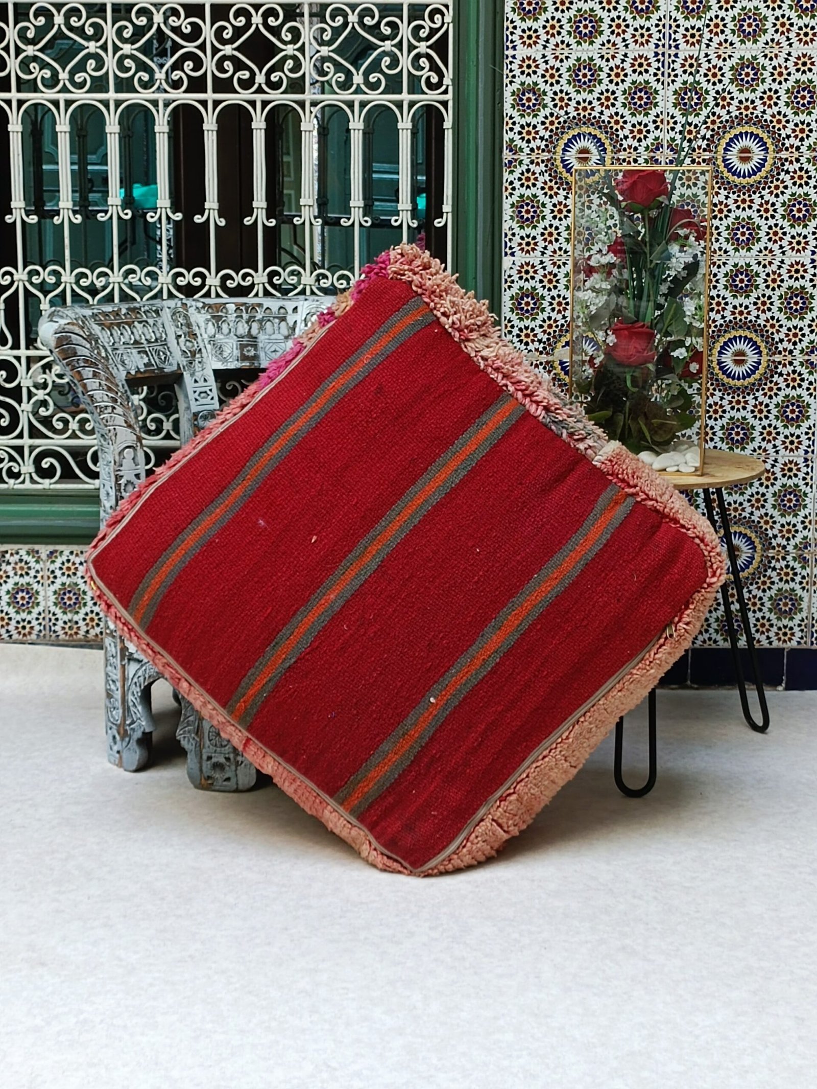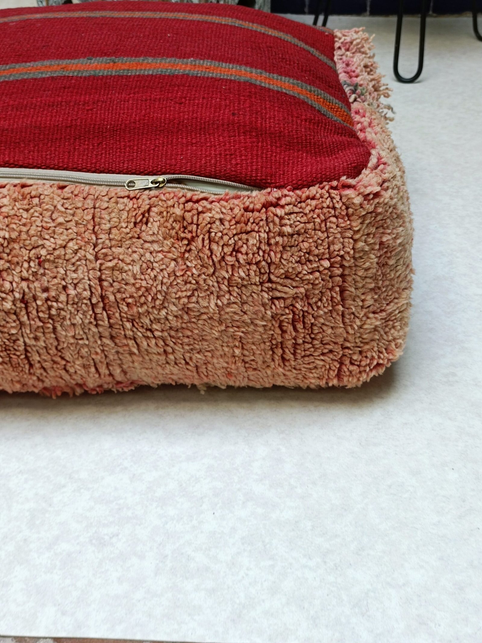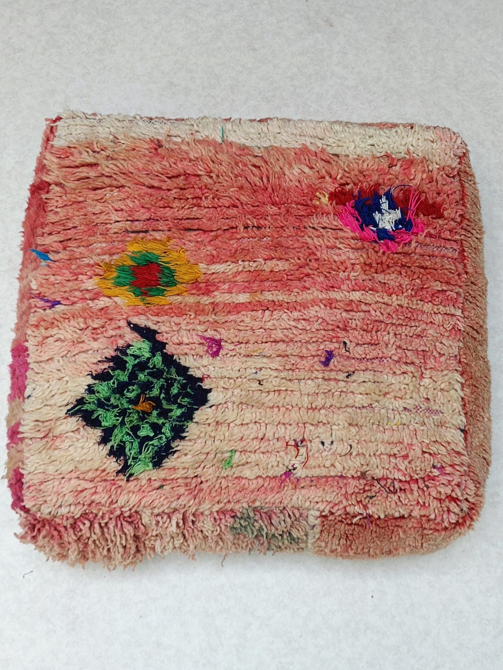 Moroccan vintage pouf, Berber floor cushion, boujaad footrest, 1.96 x 1.96 x 0.65 Feet / 60 x 60 x 20 cm