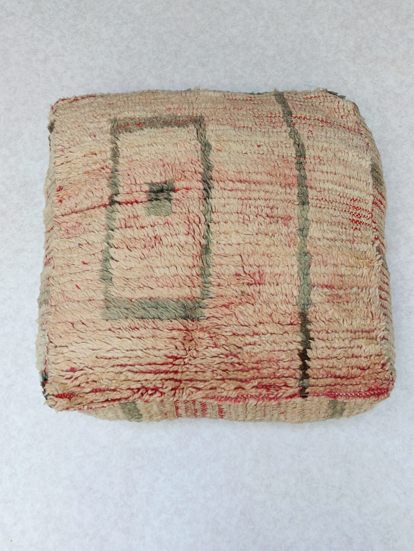 wool Pouf, handmade from old beni ouarain rug very resistant and very soft with a warm and elegant grain. All these features that make up wool make this pouf an exceptional interior and furnishing item.