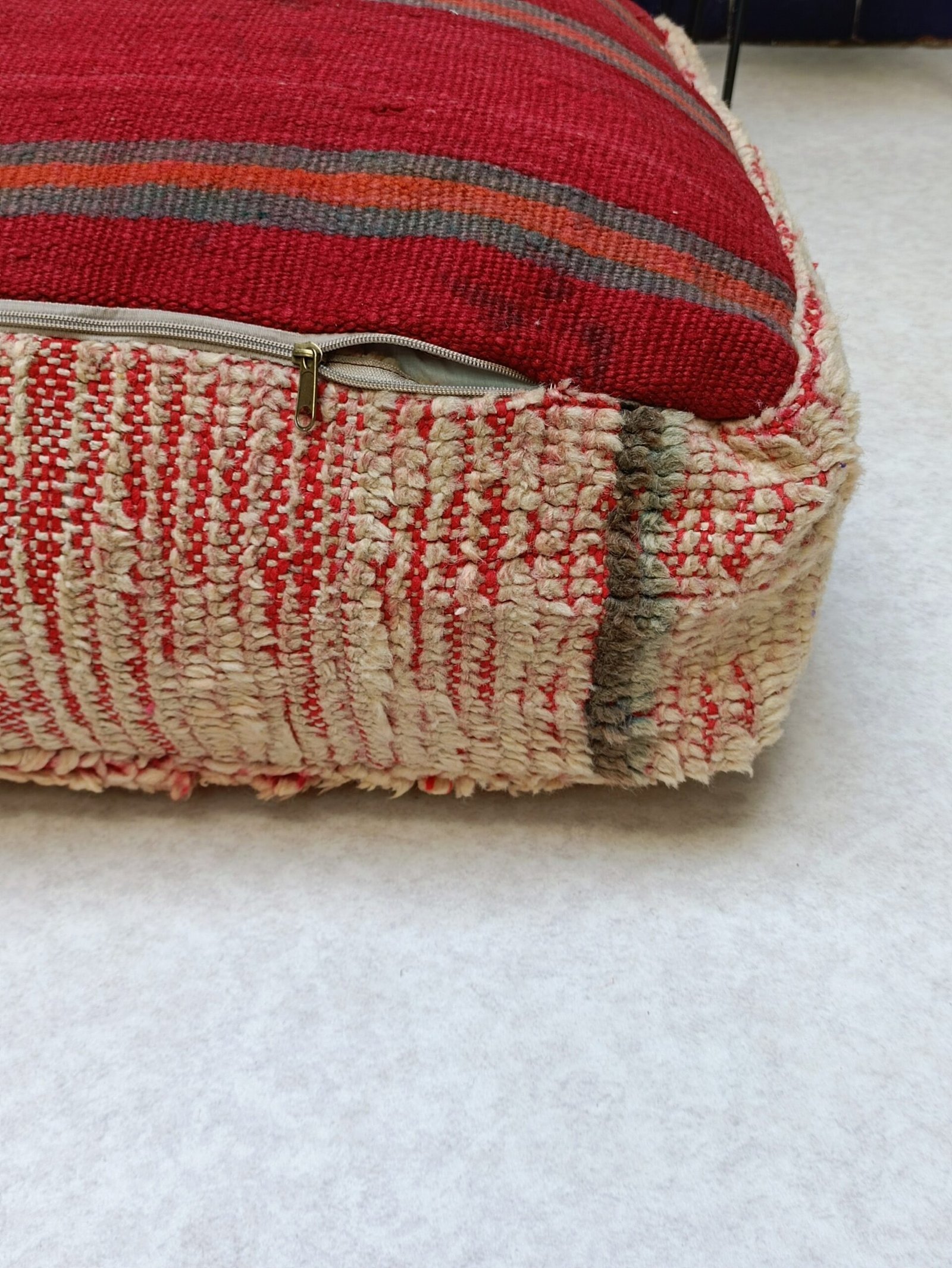Moroccan Kilim Floor Cushion is multiple function, it can be used as an ottoman, footrest, yoga meditation cushion, or just a coffee table.