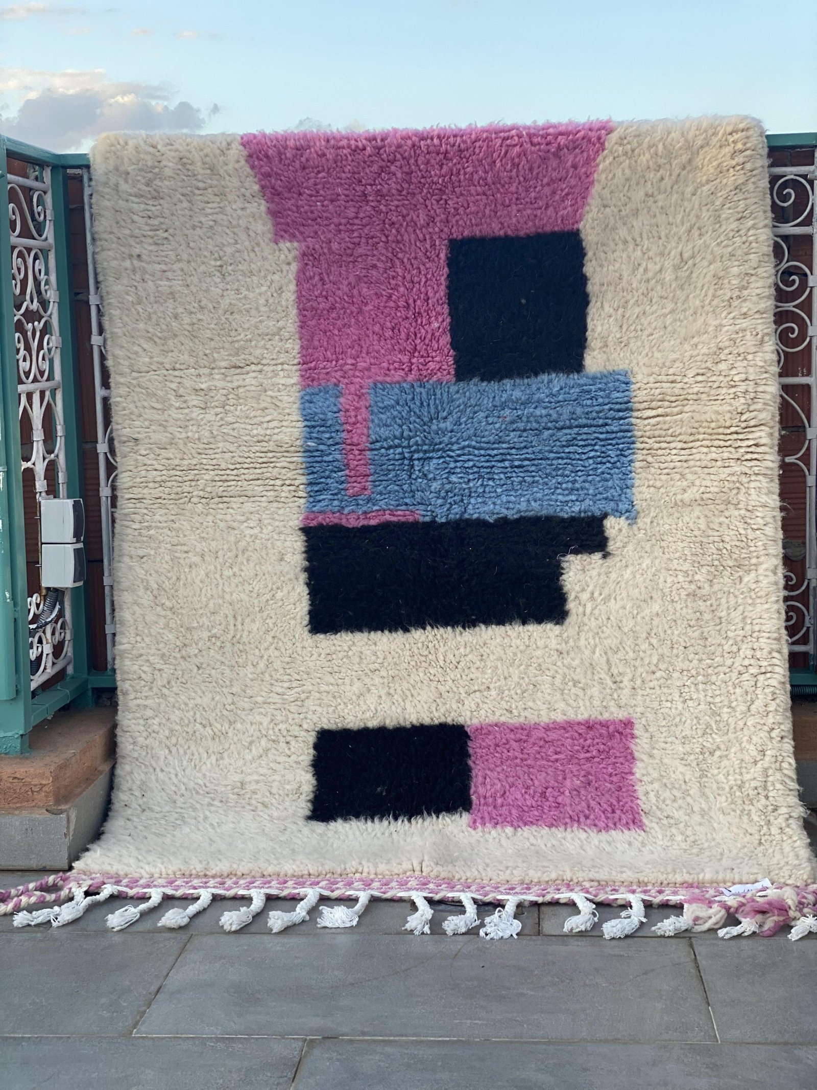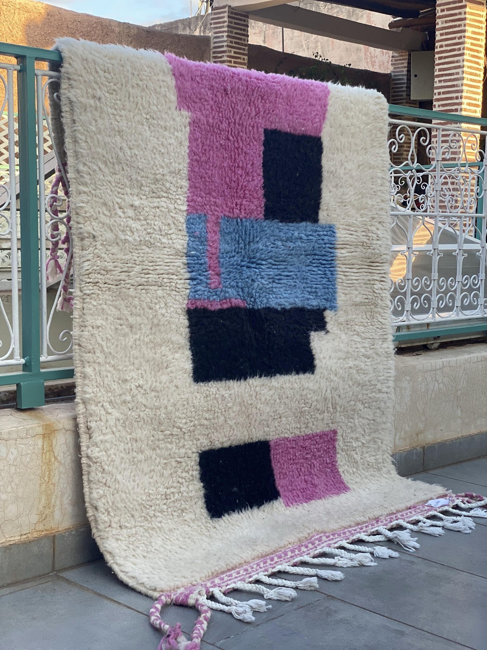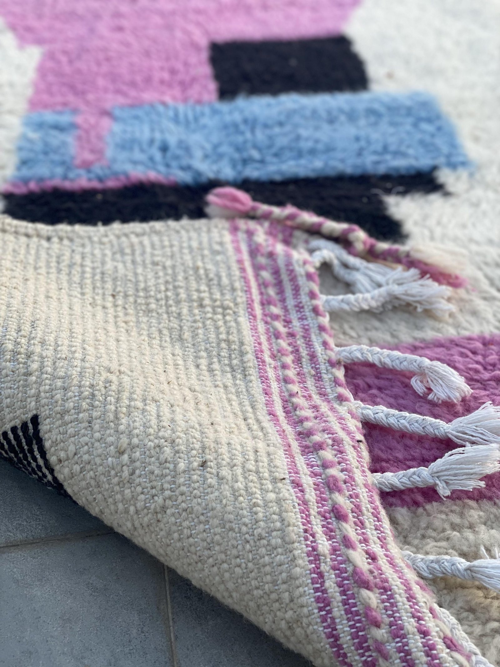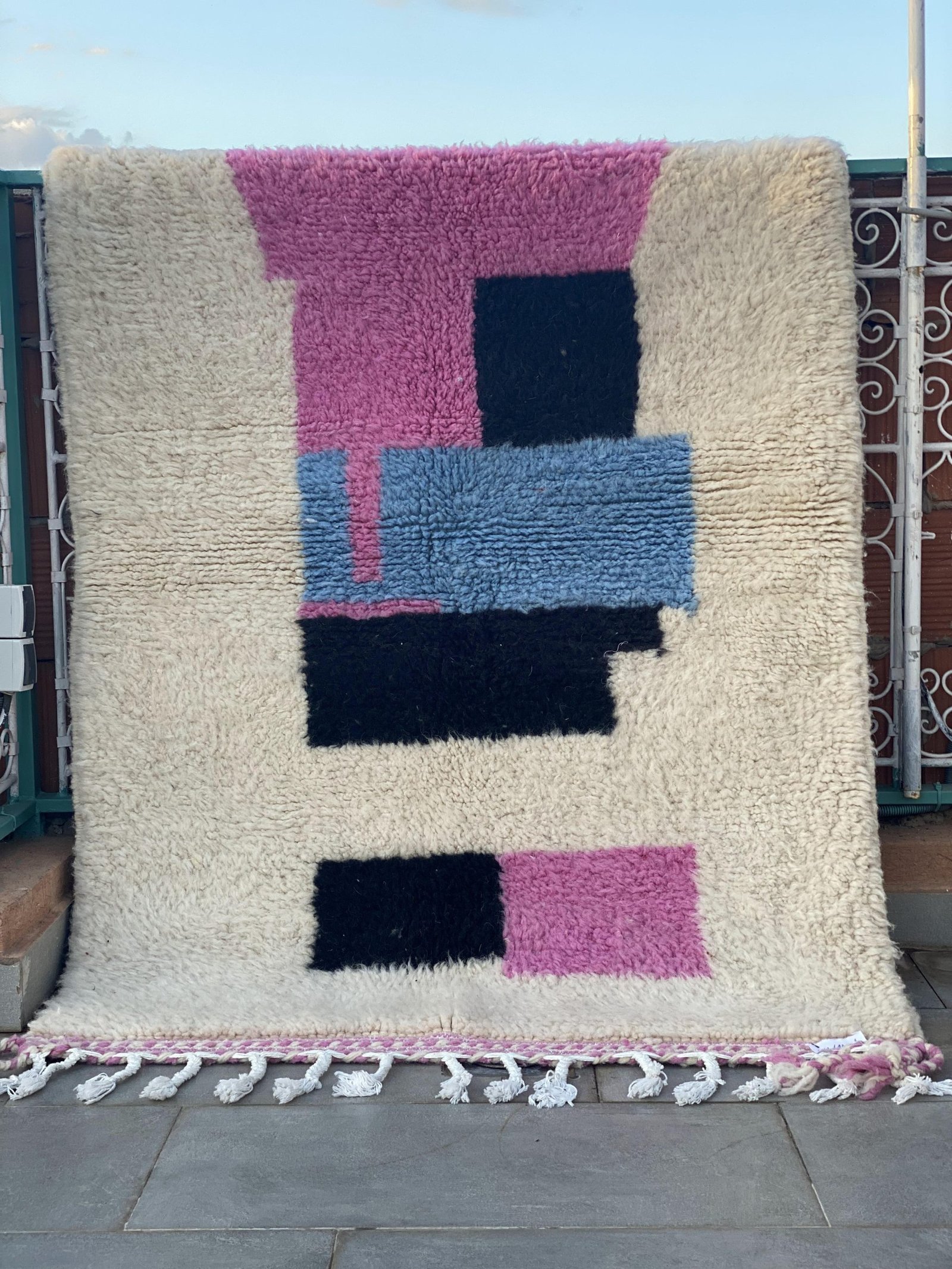 Azilal rugs are works of art weaved traditional weaving looms which every rural Berber woman in the Atlas Mountains in Morocco tells her story. The themes are all inspired by tribal life such as birth, motherhood, marriage and even farming imagined by the weaver who made it, it is a skillful balance between weaving and knotting that allows them to create unique rugs with vintage patterns and colors.