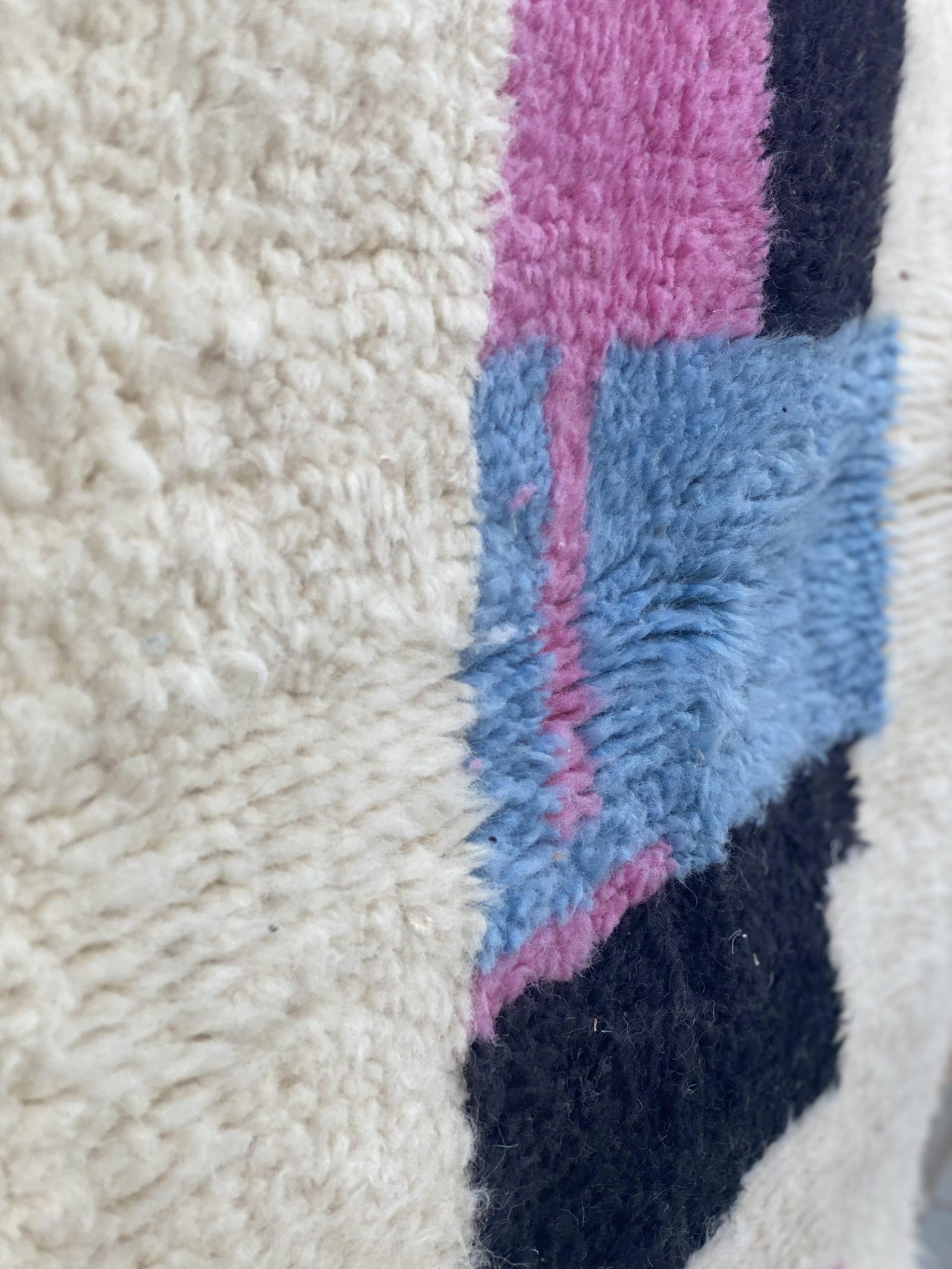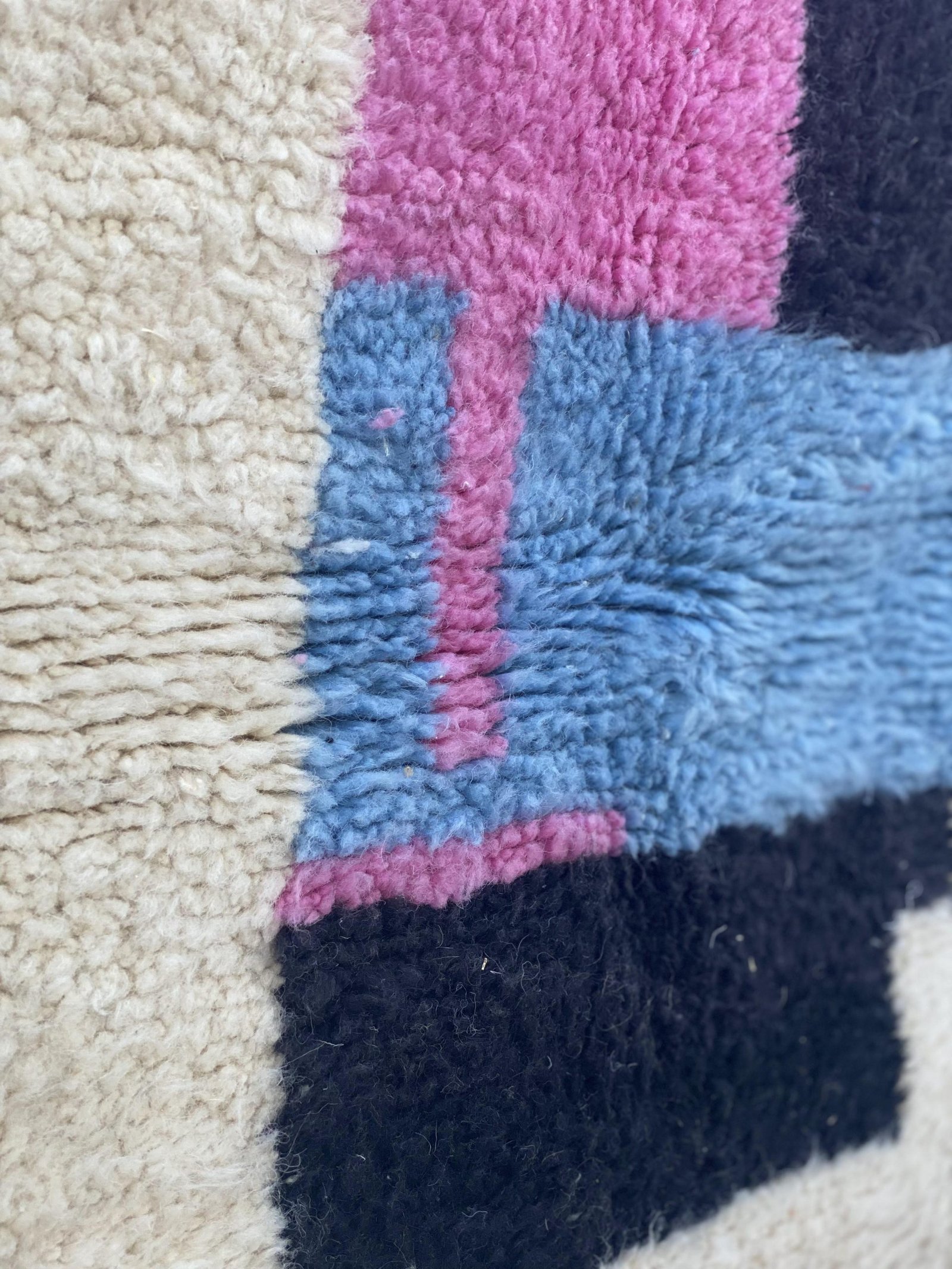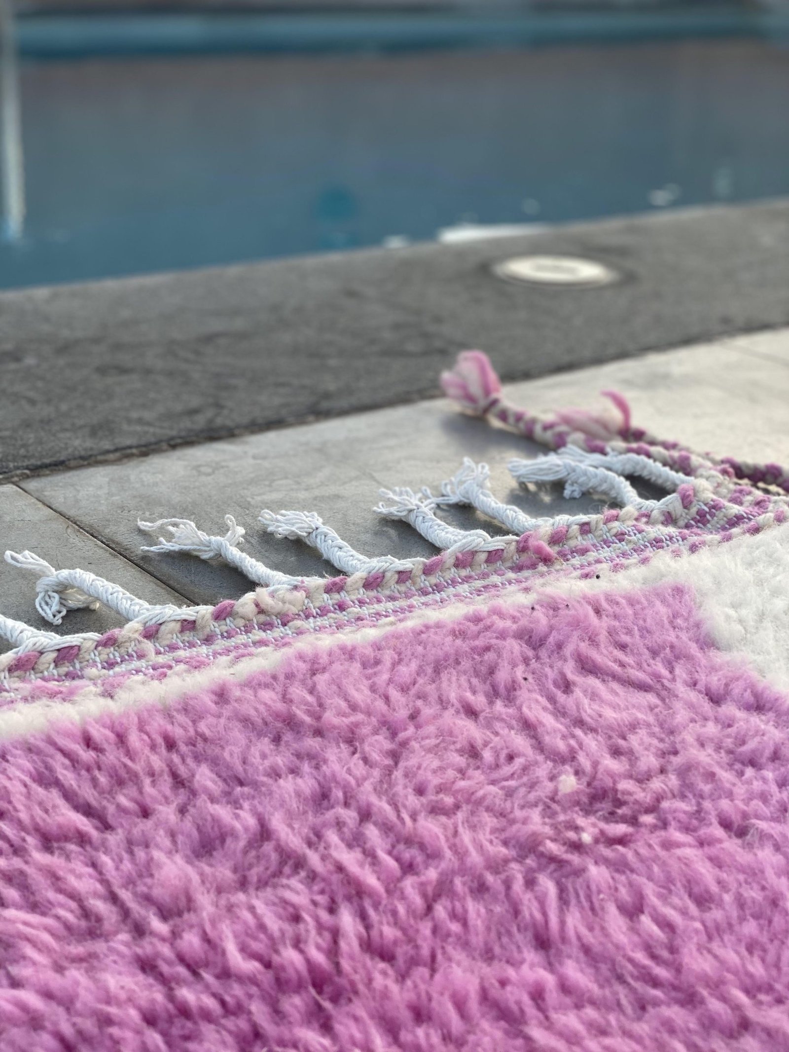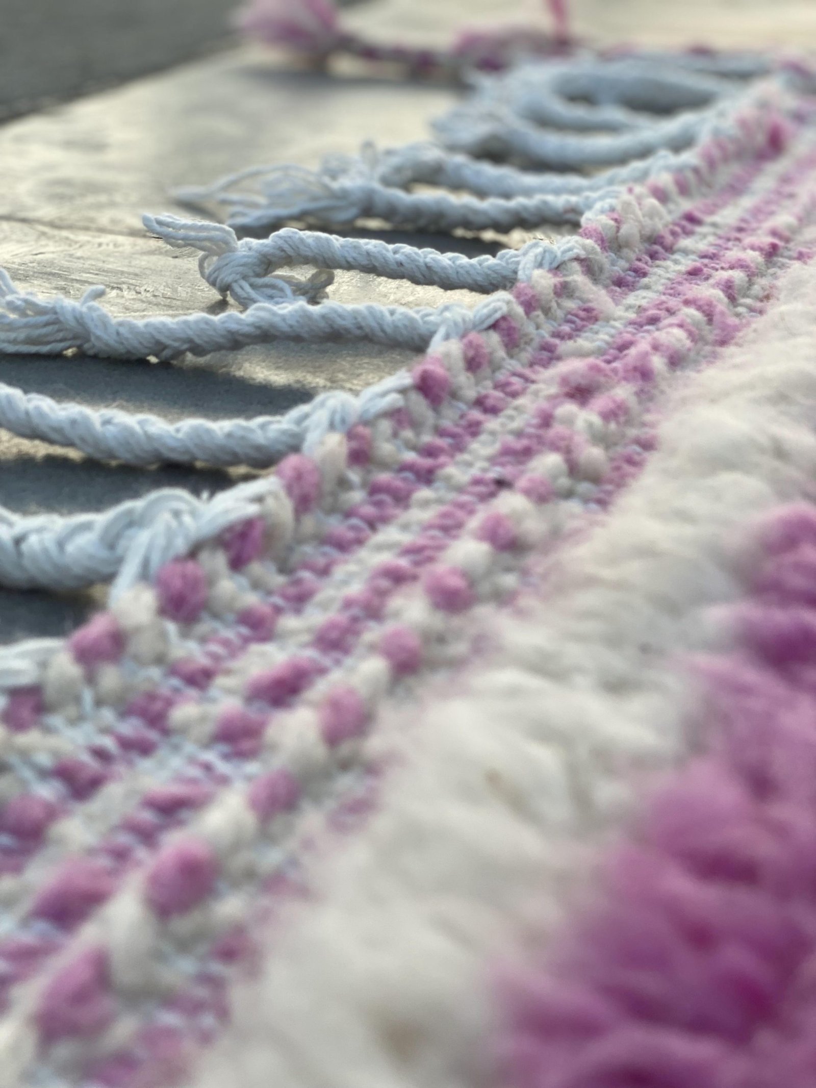 Azilal rugs are works of art weaved traditional weaving looms which every rural Berber woman in the Atlas Mountains in Morocco tells her story. The themes are all inspired by tribal life such as birth, motherhood, marriage and even farming imagined by the weaver who made it, it is a skillful balance between weaving and knotting that allows them to create unique rugs with vintage patterns and colors.
