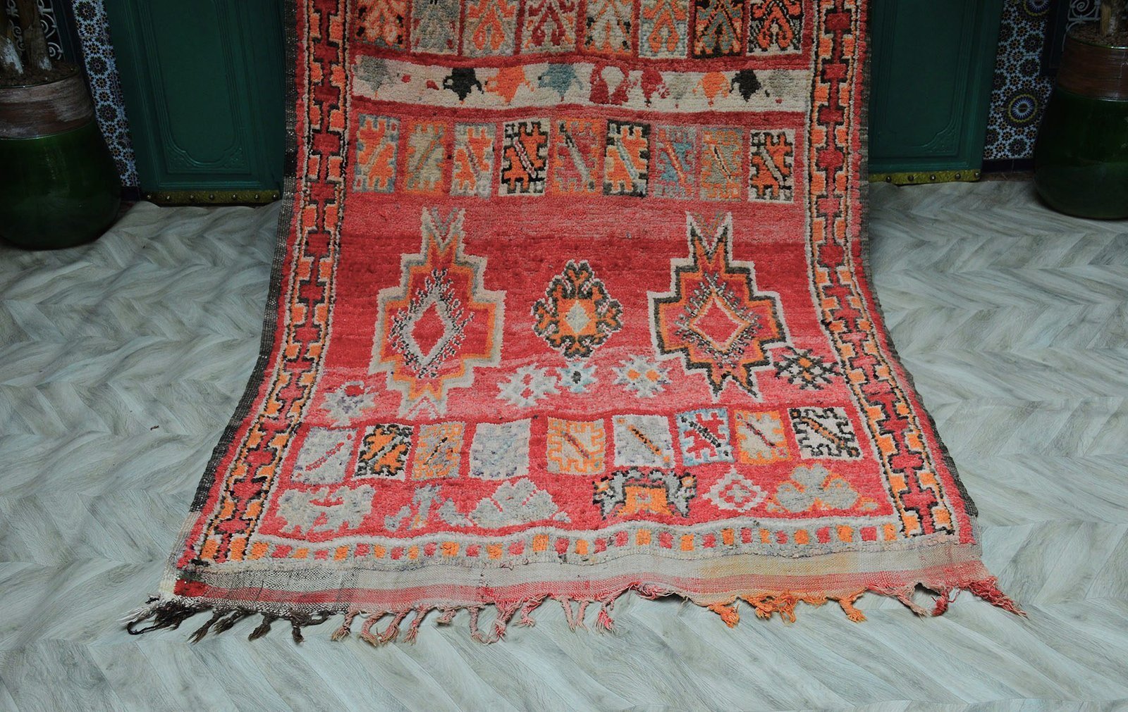 vintage moroccan beni mguild rug, berber handmade area rug 267 x 158 cm