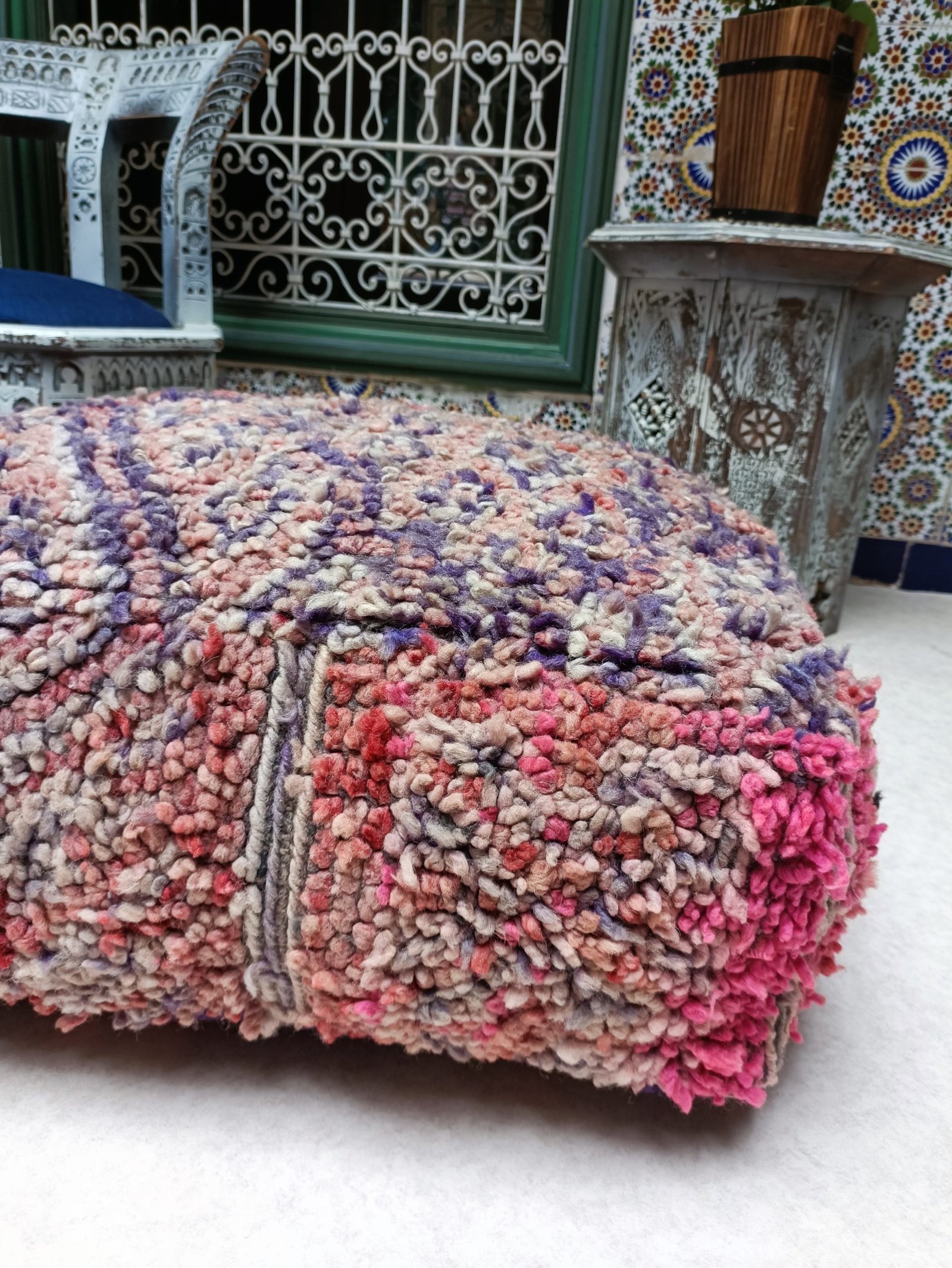 Moroccan pouf, floor cushion vintage Moroccan ottoman, square pouf, Berber floor cushion.