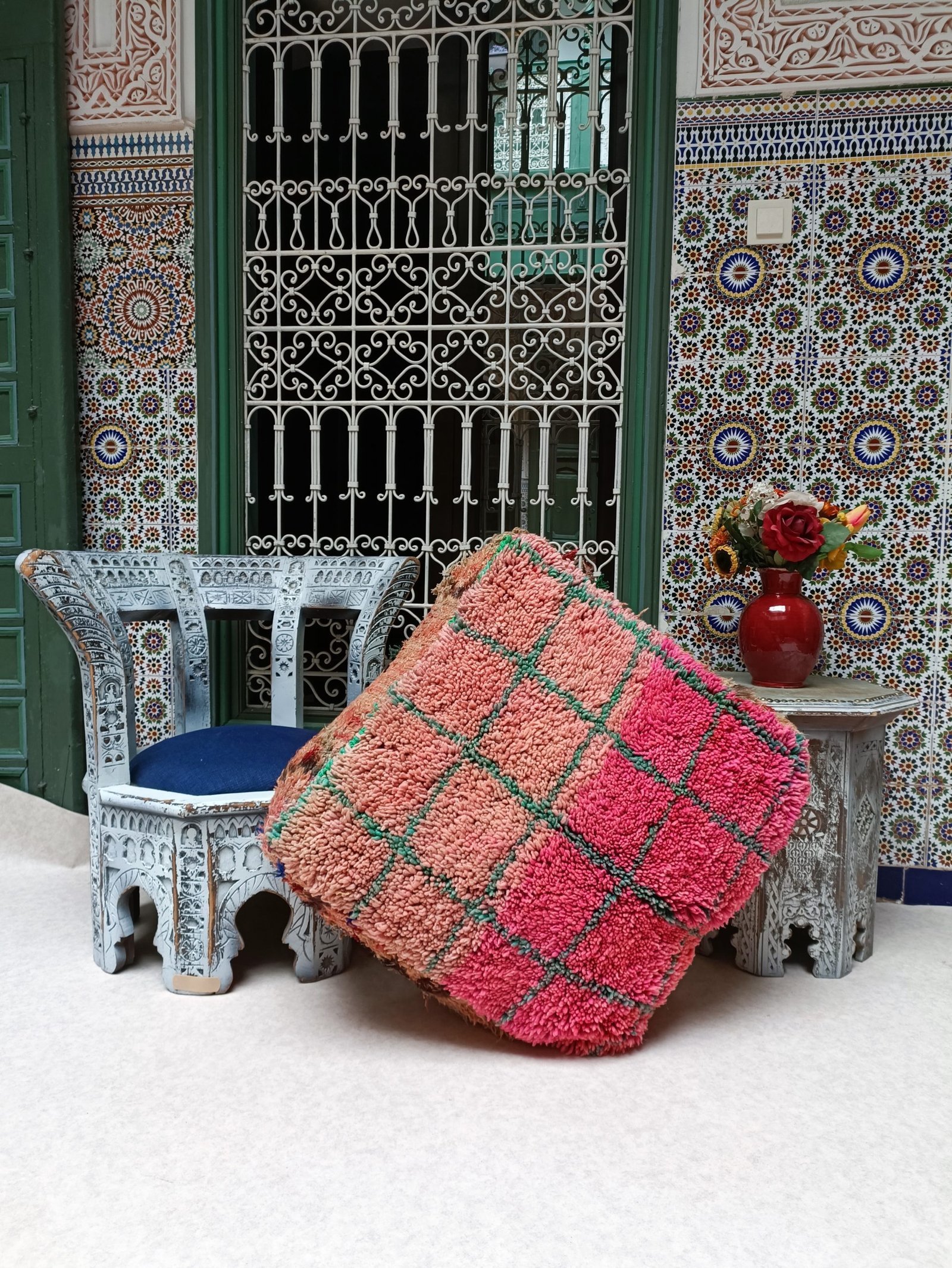 Vintage Moroccan Kilim Pouf – Pink Ottoman Cushion