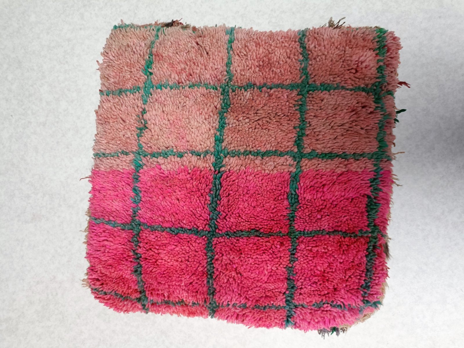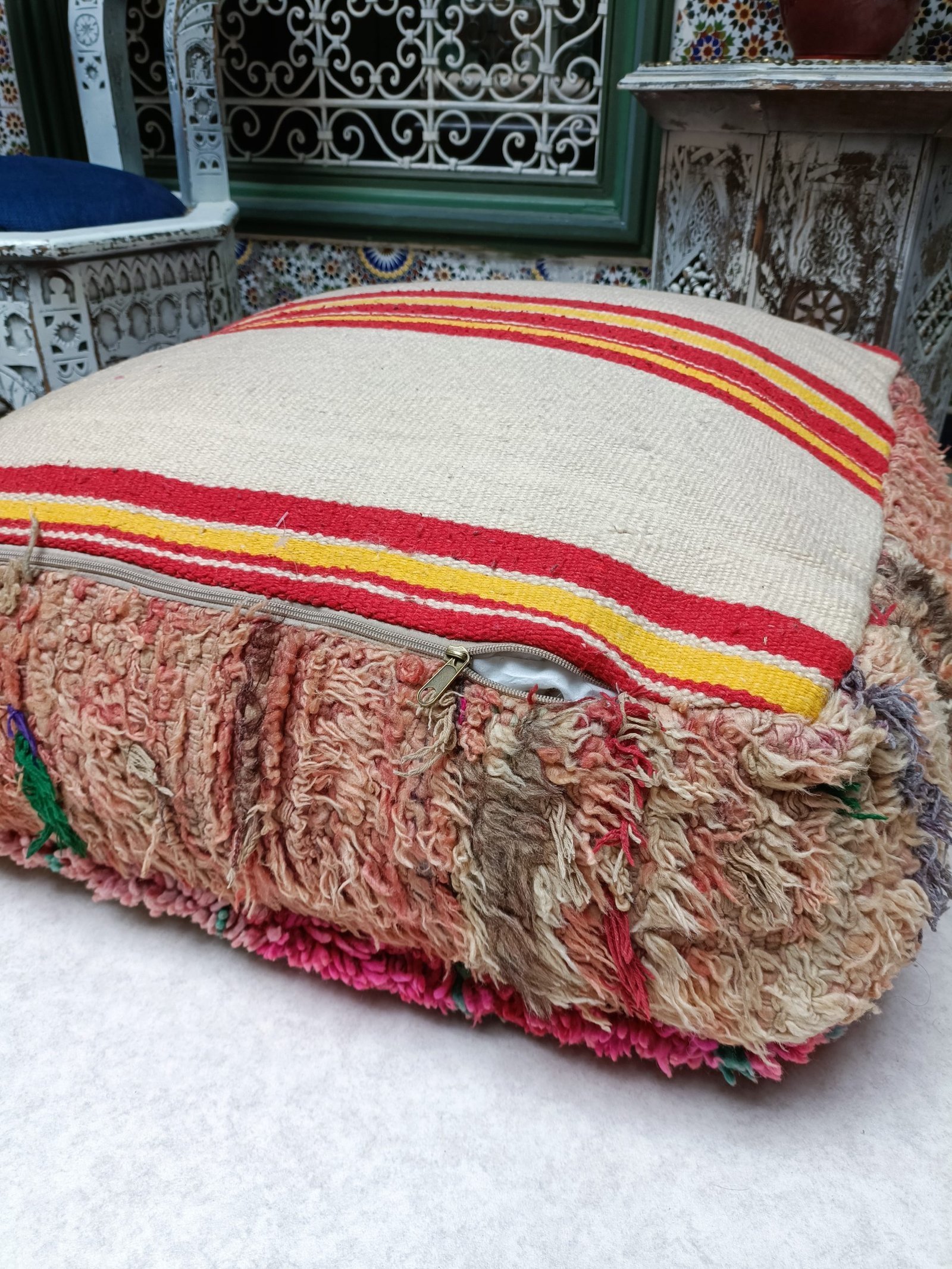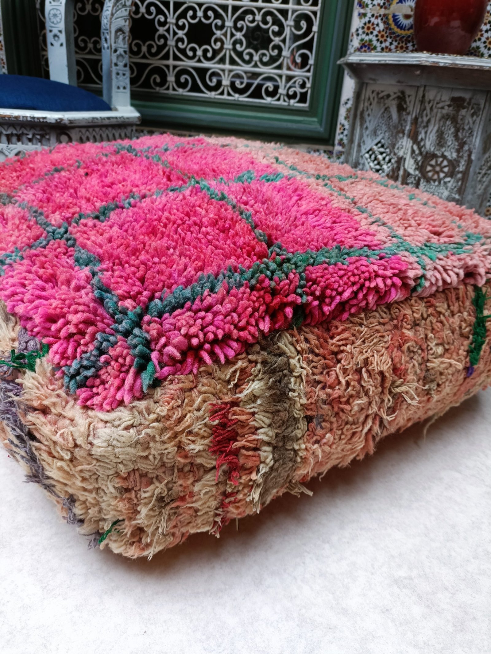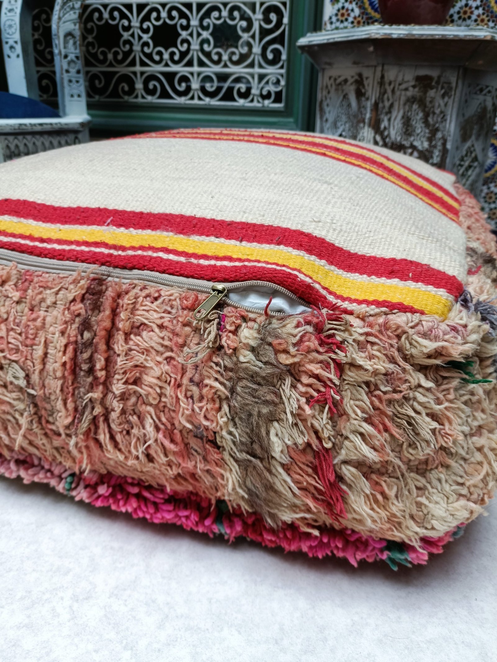 wonderful wool Pouf, handmade from old beni ouarain rug very resistant and very soft with a warm and elegant grain. All these features that make up wool make this pouf an exceptional interior and furnishing item.