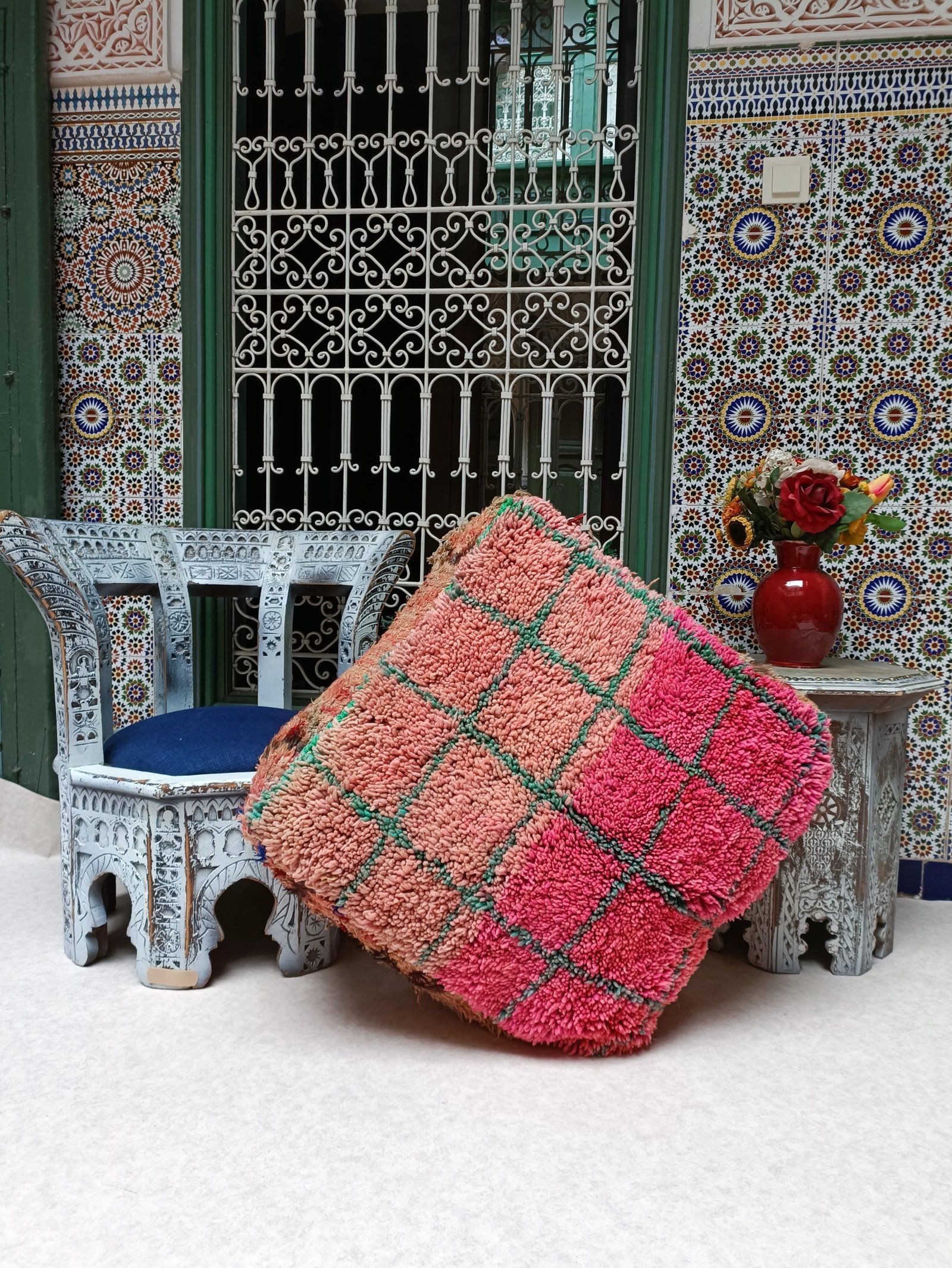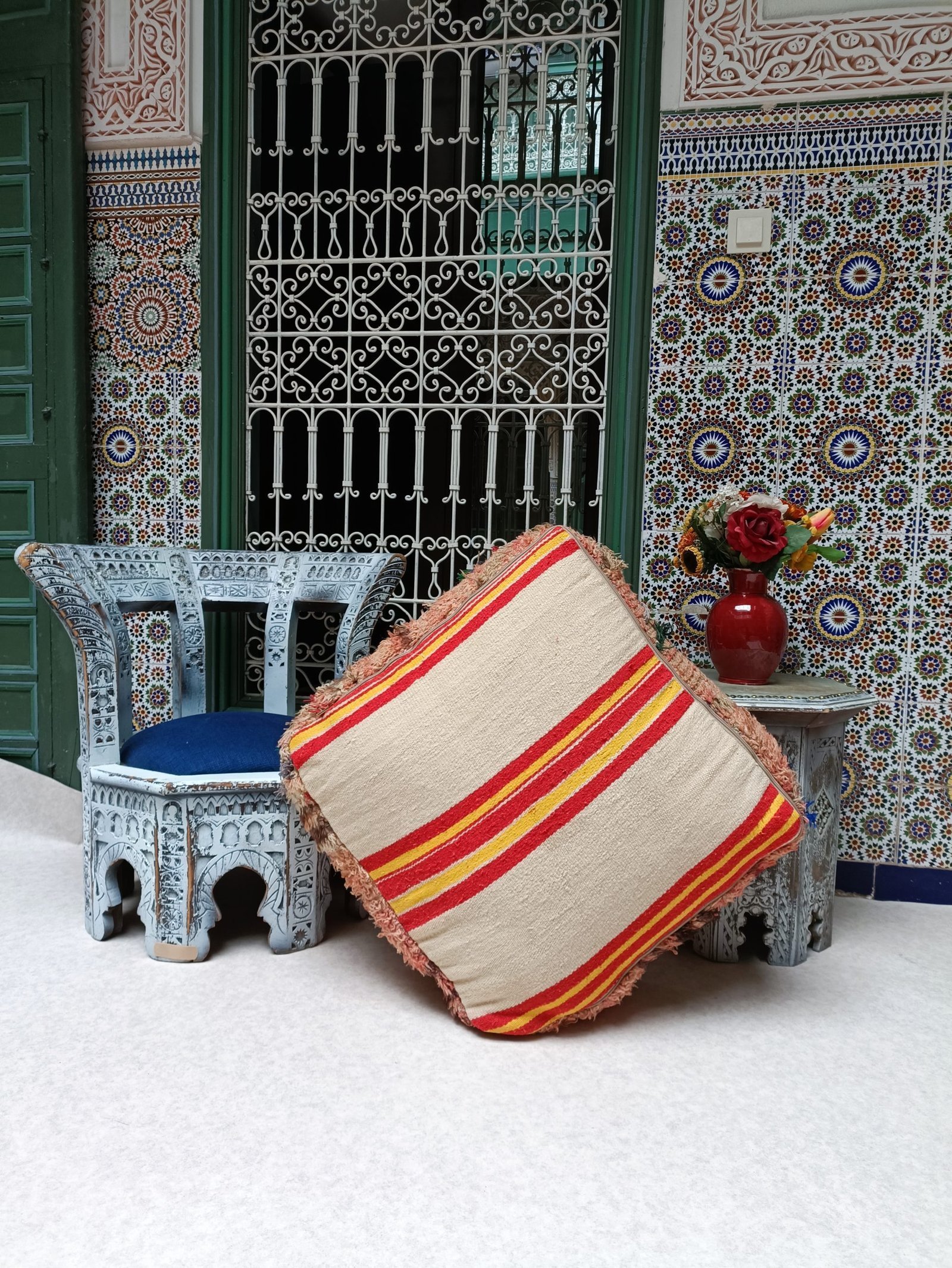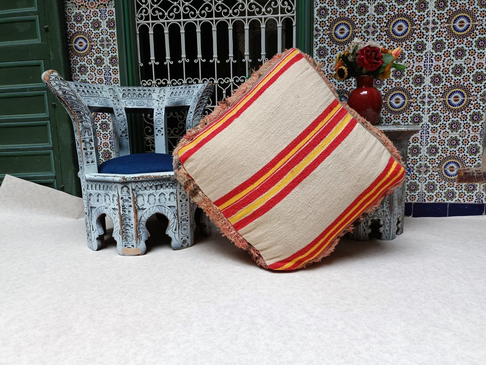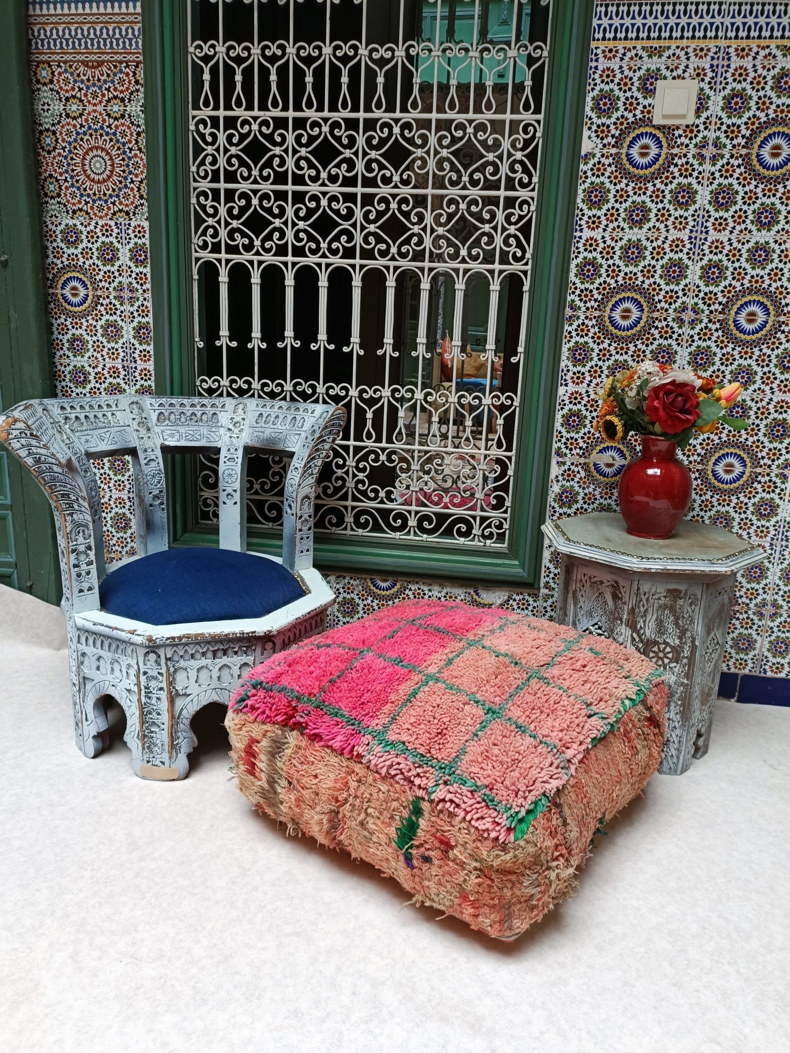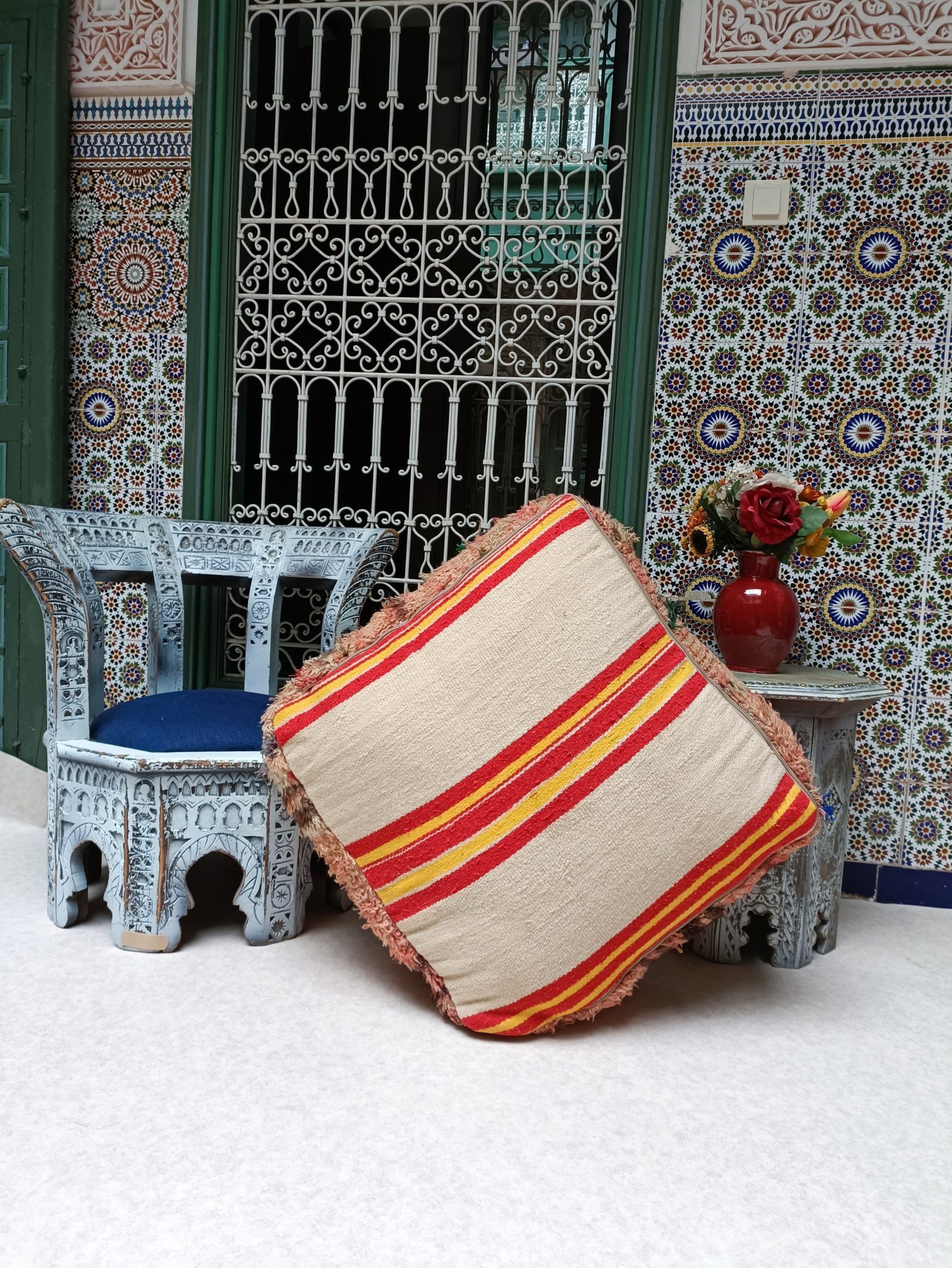 wonderful wool Pouf, handmade from old beni ouarain rug very resistant and very soft with a warm and elegant grain. All these features that make up wool make this pouf an exceptional interior and furnishing item.