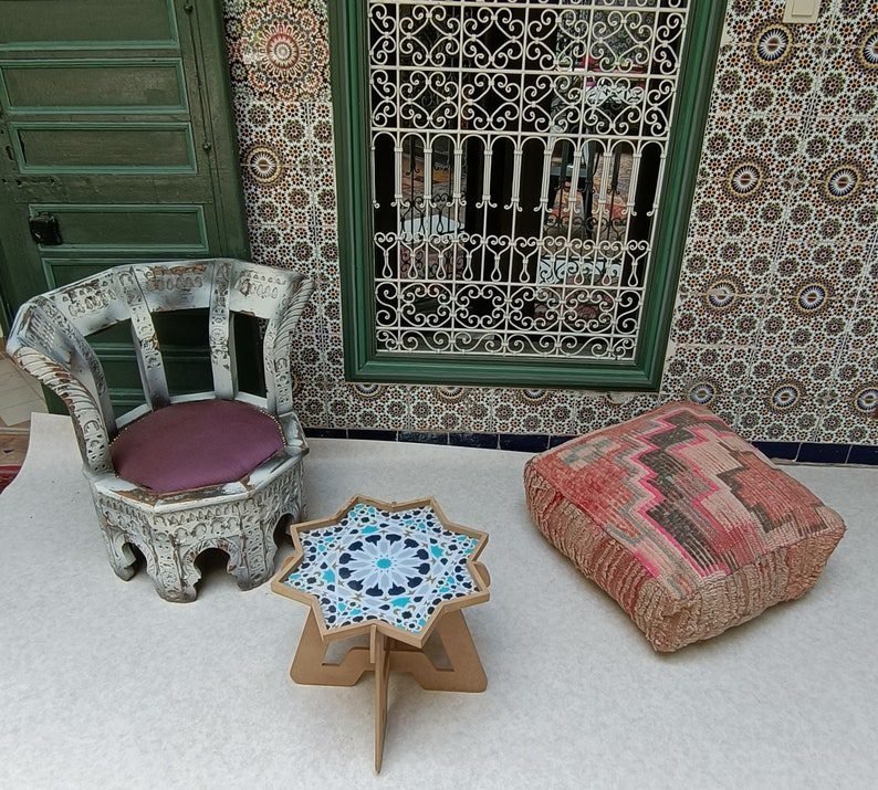 Beautiful Floor pouf, Vintage Kilim Ottoman, Berber Floor Cushion, Seat Cushion, Armchair, Sofa Pillow 1.96 x 1.96 x 0.65Ft / 60 x 60 x 20cm